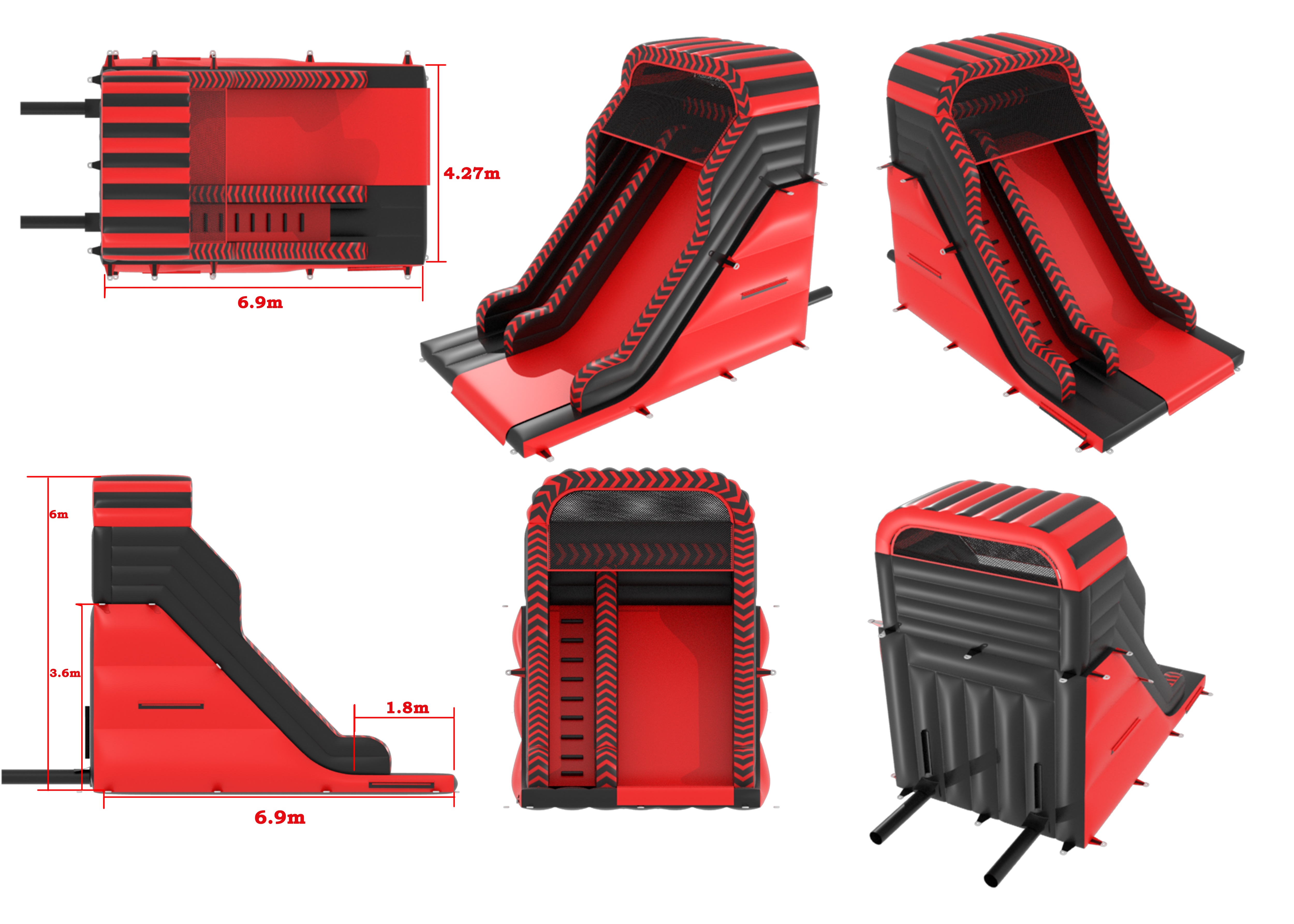 - The platform on this inflatable slide has been reduced in width by 60% to accommodate single-file use by children, reducing weight by approximately 45kg.