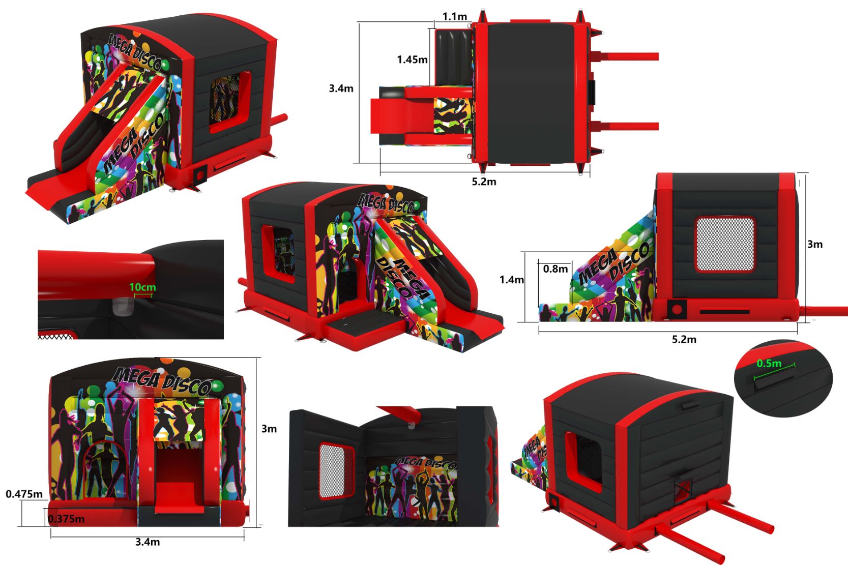 BBOL-211 - 12x17x10.5ft - Front Slide Combo - (Red & Black Disco) - (Includes light & music pouch) (VPC)