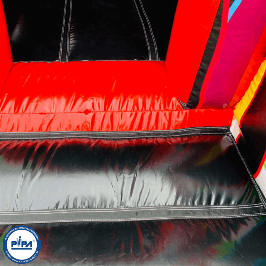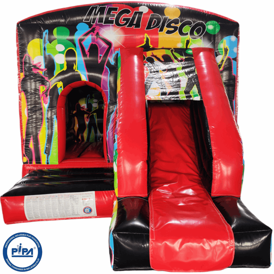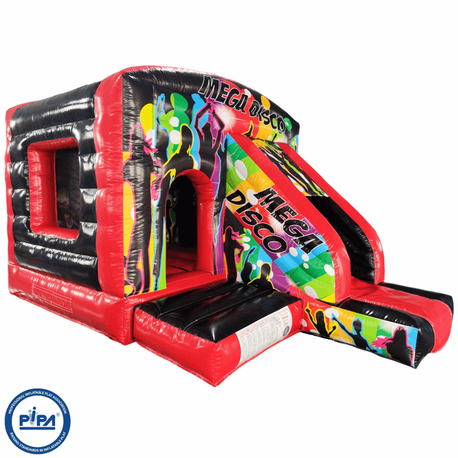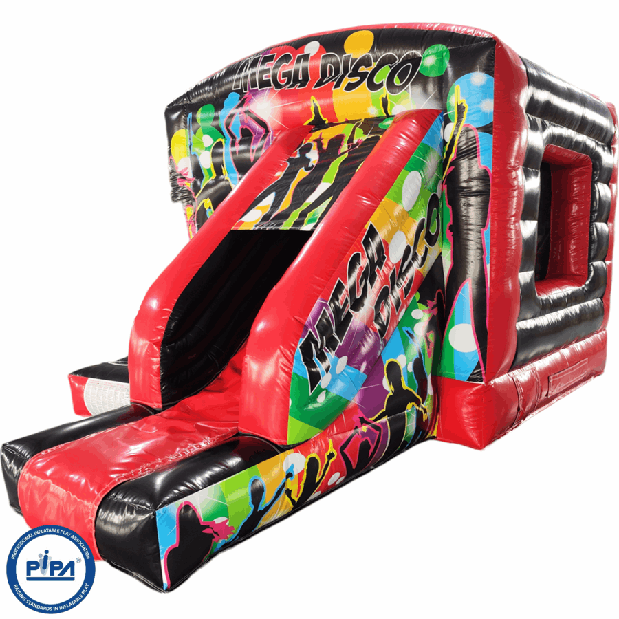 The 12ft x 17ft Bouncy castle with slide is a fantastic new addition that can be added to your fleet. The bouncy castle with slide combines 2 of the most popular items in one extraordinary inflatable where space is at a premium. The bouncy castle with slide combo is the perfect combination slide for any party, venue or occasion and is ideal for all age groups. This brightly coloured piece of equipment provides the perfect bouncing area to bounce along with friends, whilst the slide provides entertainment for the rest of the guests at the same time and certainly won't break the bank.