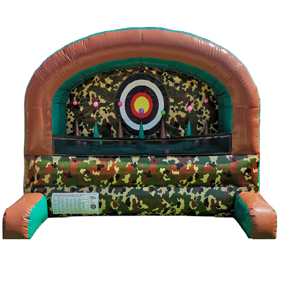 Players take it in turn to man the gun stations, 2 at a time and shoot away at the targets in front of them in a set amount of time. The inflatable tin can alley is wild west themed to make it that little bit extra special and is an Ideal carnival game, team building game, fundraiser and event showstopper and works really well when played as part of a time challenge with potential prizes for those able to knock the most balls out of the air in the allotted timescale.