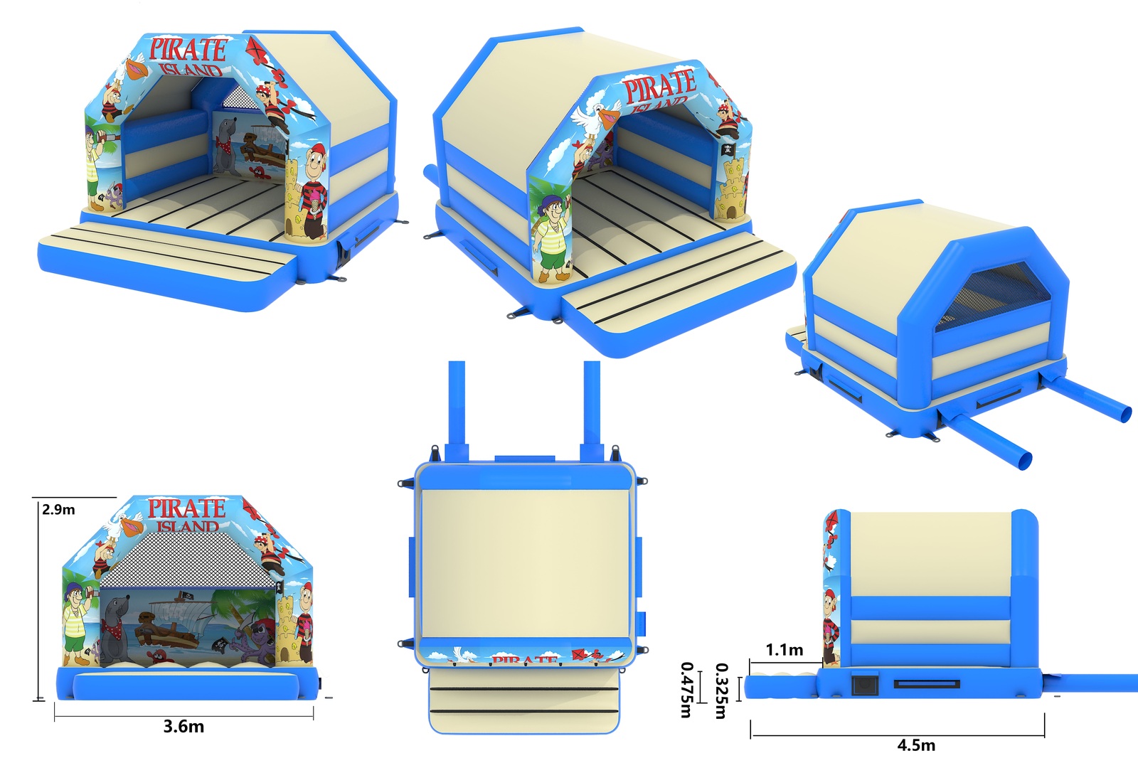 The 12x15 Pirate Bouncy Castle is the perfect theme for any Pirate themed party, venue or occasion. The Pirate castle is a great size at only 9ft 9" which makes it ideal for both indoors and outdoor hire and will keep both adults and children entertained for hours, leaving you to be able to sit back and watch them bounce, play, laugh, have fun and enjoy their day. The Pirate artwork is very realistic and absolutely fantastic quality, ensuring the Pirate bouncy castle is the perfect theme for any themed party idea or celebration.