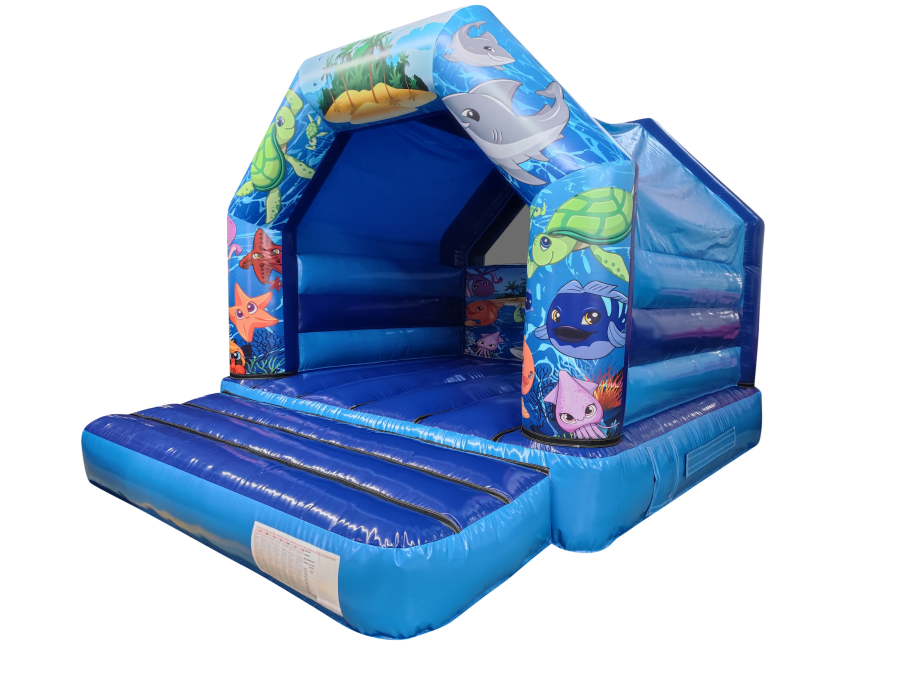 The 12x15 Seaworld Bouncy Castle is the perfect theme for any Seaworld themed party, venue or occasion. The Seaworld castle is a great size at only 9ft 9" which makes it ideal for both indoors and outdoor hire and will keep both adults and children entertained for hours, leaving you to be able to sit back and watch them bounce, play, laugh, have fun and enjoy their day. The Seaworld artwork is very realistic and absolutely fantastic quality, ensuring the Seaworld bouncy castle is the perfect theme for any themed party idea or celebration.