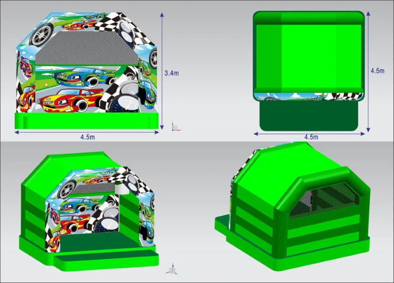 Here is our fantastic 15x15ft Cars Bouncy Castle. Our 15x15ft Cars bouncy castle is fantastic for any party, venue or occasion. The Cars Castle is a great size and at only 11.5ft tall, it's ideal for both indoor or outdoor events. This Cars bouncy castle will keep children entertained for hours, leaving your customers to be able to sit back and watch the little rally drivers in the makings bounce, play, laugh, have fun and enjoy their day. The Cars bounce castle artwork is both bold and bright with very realistic and absolutely fantastic quality images, ensuring the Cars bouncy castle perfect for any party or event.