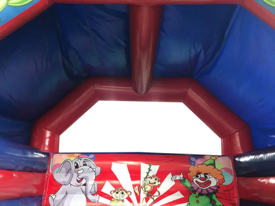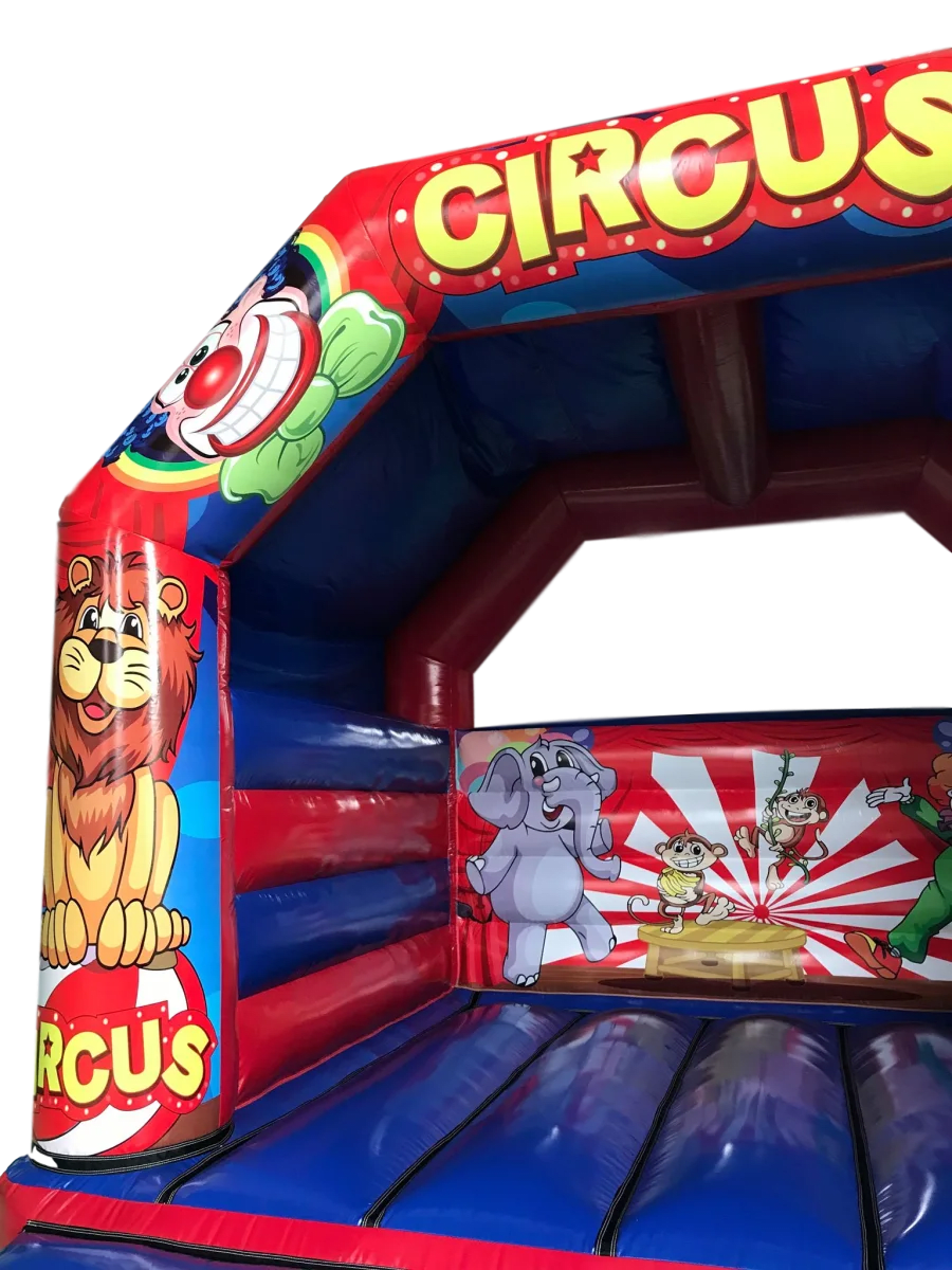 Here is our fantastic 15x15ft Circus Bouncy Castle. Our 15x15ft Circus bouncy castle is fantastic for any party, venue or occasion. The Circus Castle is a great size and at only 11.5ft tall, it's ideal for both indoor or outdoor events. This Circus bouncy castle will keep children entertained for hours, leaving your customers to be able to sit back and watch the little characters in the makings bounce, play, laugh, have fun and enjoy their day. The Circus bounce castle artwork is both bold and bright with very realistic and absolutely fantastic quality images, ensuring the Circus bouncy castle perfect for any party or event.