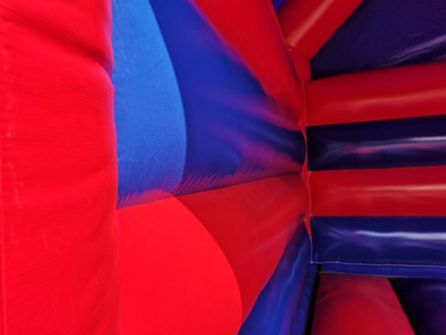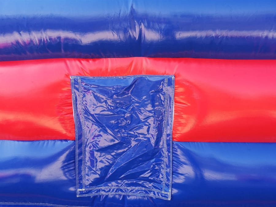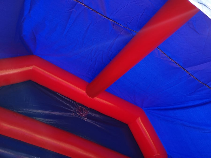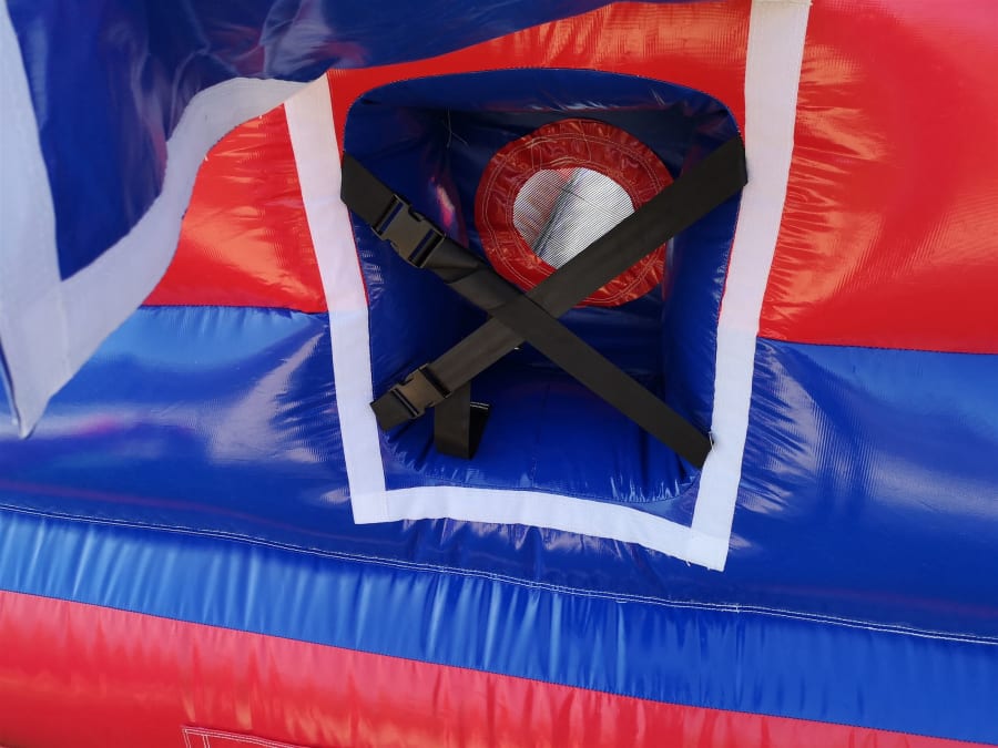 The Inflatable Disco Castle comes with a lighting slot in the top that accepts most kinds of disco lighting, this is placed inside a clear plastic tube that allows light to penetrate inside the castle creating some really good effects inside. The slot is then zipped closed and a velcro cap is placed over to keep it watertight but please bear with us in heavy rain as nothing is quite 100% waterproof
