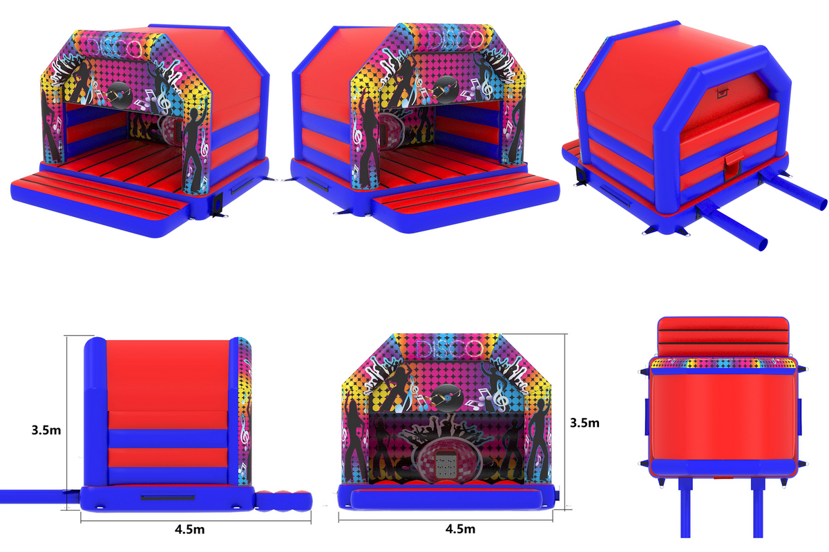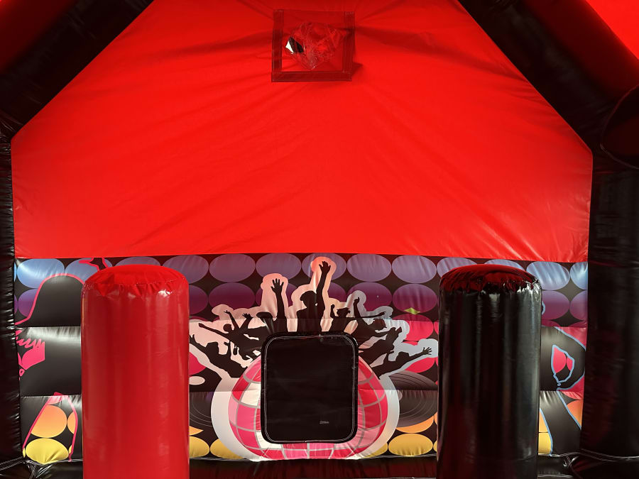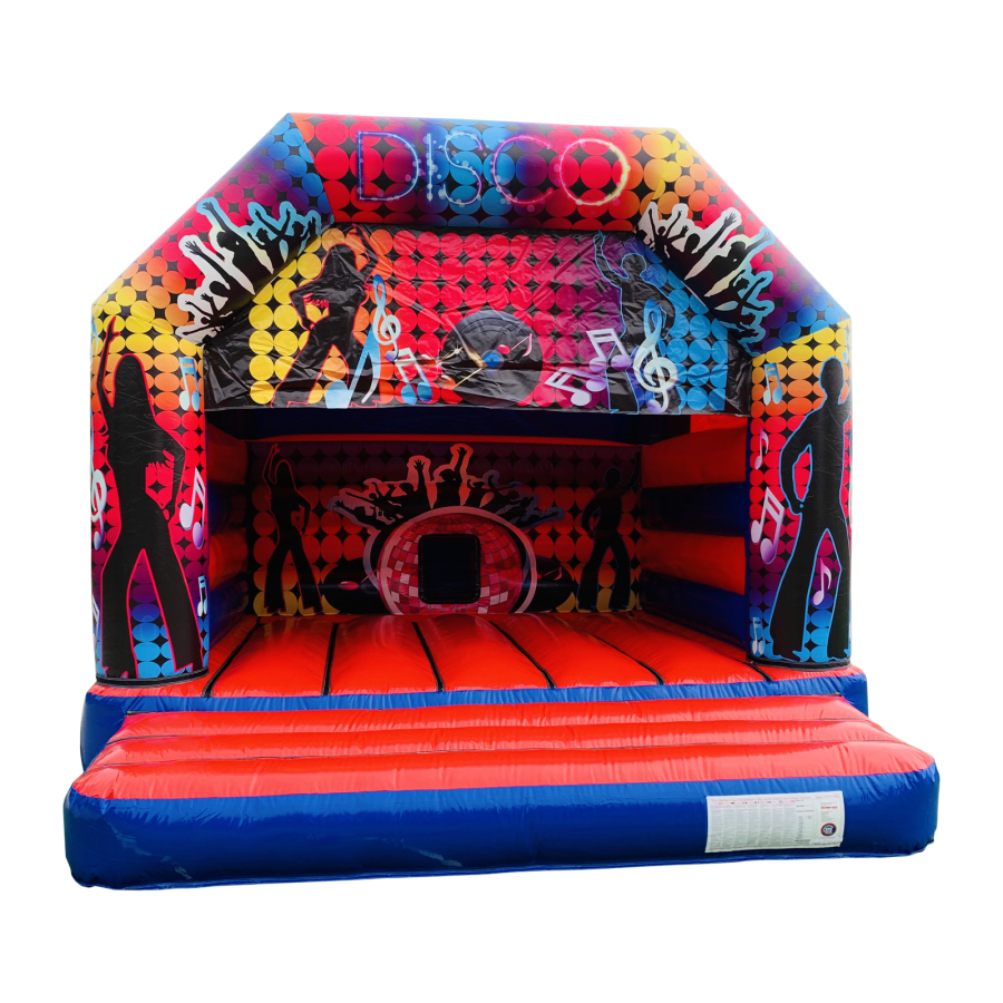 To see what related party inflatables we have for hire, Please see the related products gallery at the bottom of this page, pop the word disco into the search bar at the top of the page or check out our amazing packages section of the website.The Disco Bouncy Castle is a brilliant attraction and a really good way to draw visitors to your event, fete, gala, fair, school gala, pub, club, group, end of term party, wedding reception, shopping centre or simply for a bit of light-hearted fun at a private party event or adult bash.