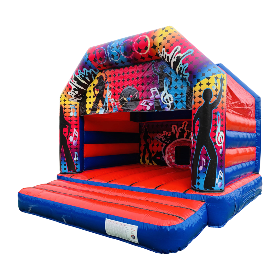 Please let me introduce you to our most popular adult disco bouncy castle in our fleet, it's our adult 15x15ft Disco bouncy castle designed specifically for big kids in mind. Our 15x15ft Adult Disco bouncy castle is fantastic for any party, venue or occasion. The Adult Disco castle is a great size and is a real eye catcher for a garden party or event.
