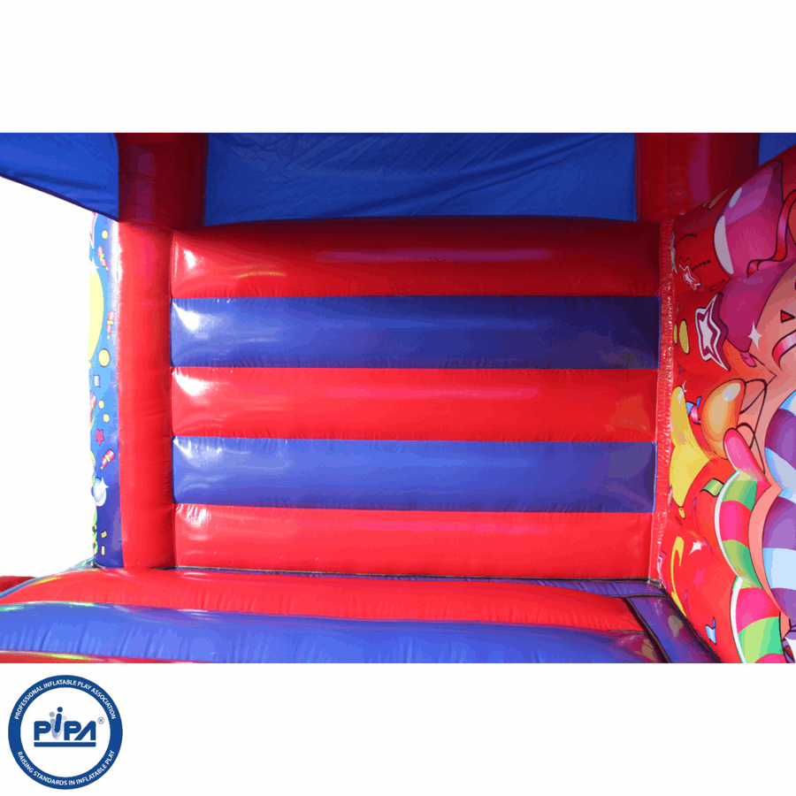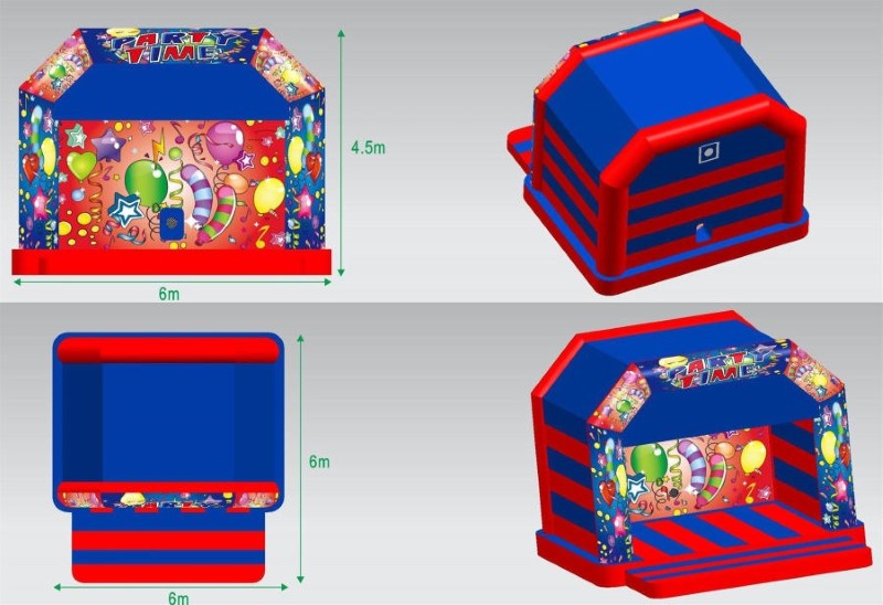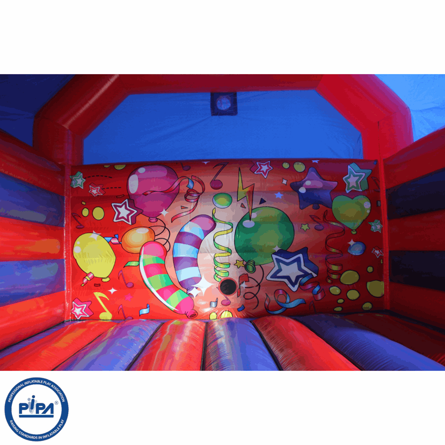 BBOL-174 - 20x20x15ft - A frame bouncer - (Red & Blue Partytime) (Disco ready - with visor)