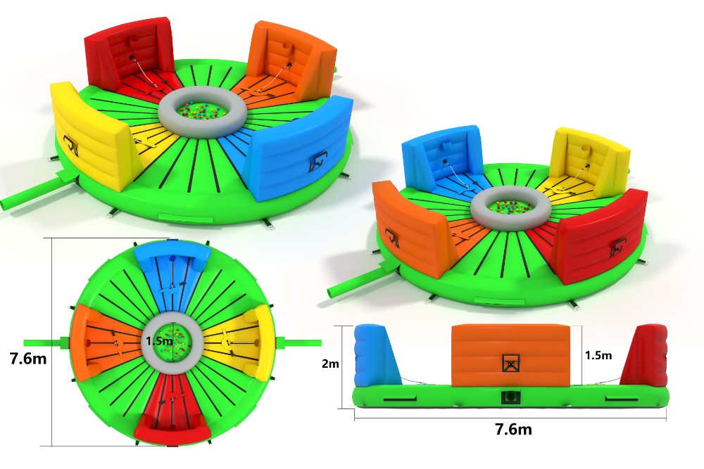 The sheer size and scale of the hungry hippo style dash game inflatable ensures visitors can see the attraction from miles around and is a fantastic way to draw in additional visitors to your event, fete, fair, school gala, pub, club, shopping centre or simply for a bit of light-hearted fun at a private party event or birthday bash. It's a fantastic team game and can be extremely competitive for all those taking part. The human hungry hippo alternative is a really fast paced game I which you must dash and grab against your opponents in the fastest time possible in order to stay in the game.