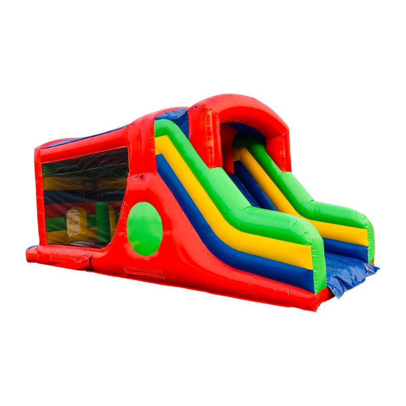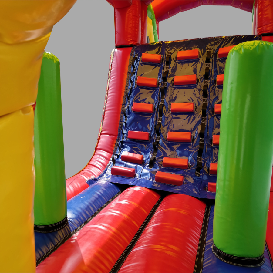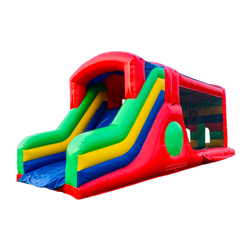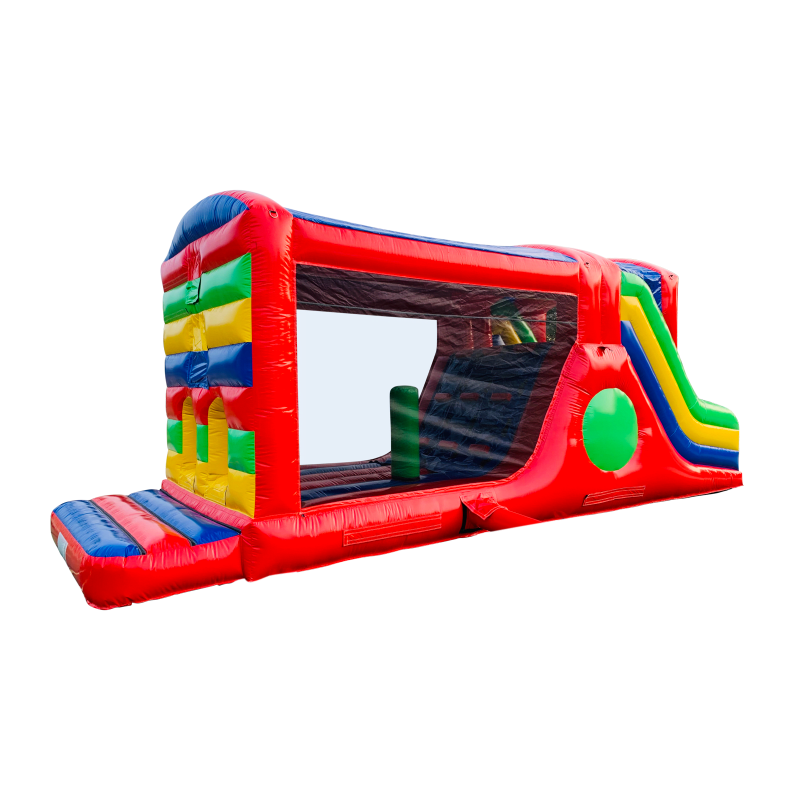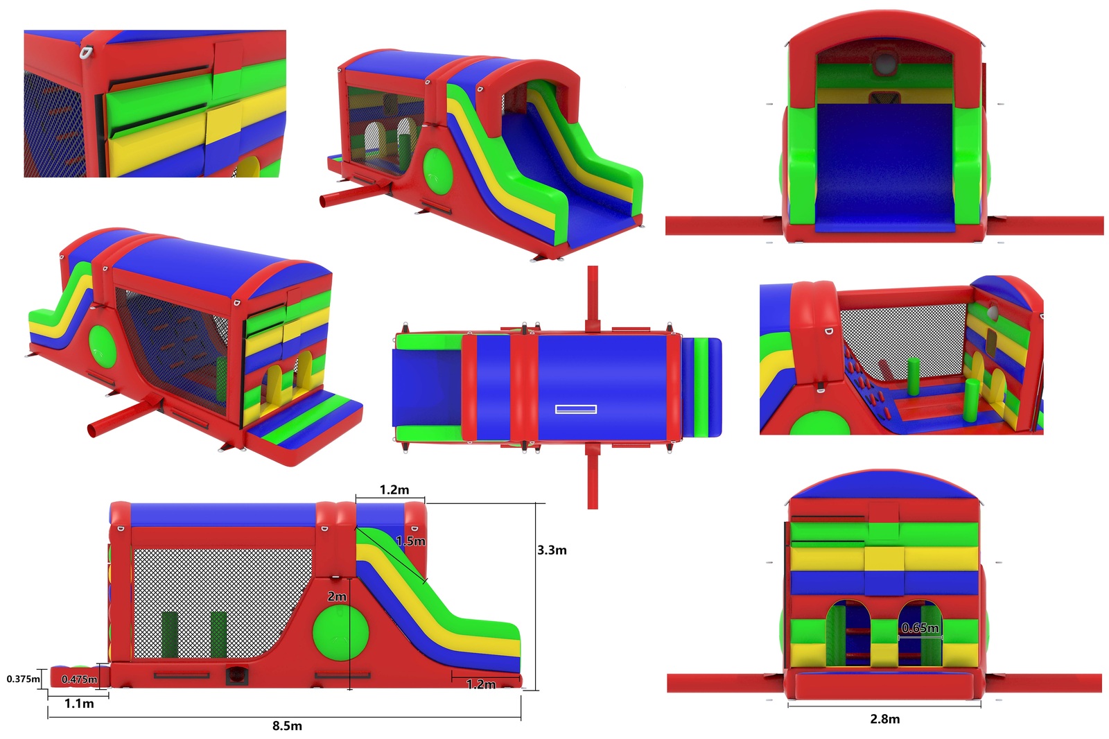 Make your child's day with this modern obstacle section. The inflatable obstacle course offers a safe entrance way with full theming, followed by a series of biff and bash pillars, cool chill out area in the middle, steep ladder climb and a crazy slide out of the end. The obstacle course is the perfect choice for your little one's birthday party school gala, summer fete and works fantastically as a stand alone item or as part of a larger package of matching inflatables.