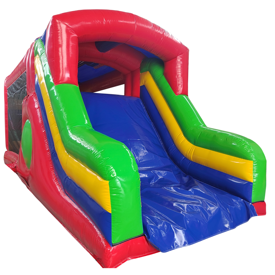 The fun run is ideal for all those little one's wanting to celebrate their big day. An absolute party favourite, it can also be used for other occasions such as weddings, christening and many other fun days and can accommodate for young toddlers to young teenagers. This fun run is designed with a large assault like/ bouncing area but also with a slide so it gives the users that little extra excitement of a slide AND biff and bash pillows with some foam block square steps at the end to help get the users to the top of the slide.