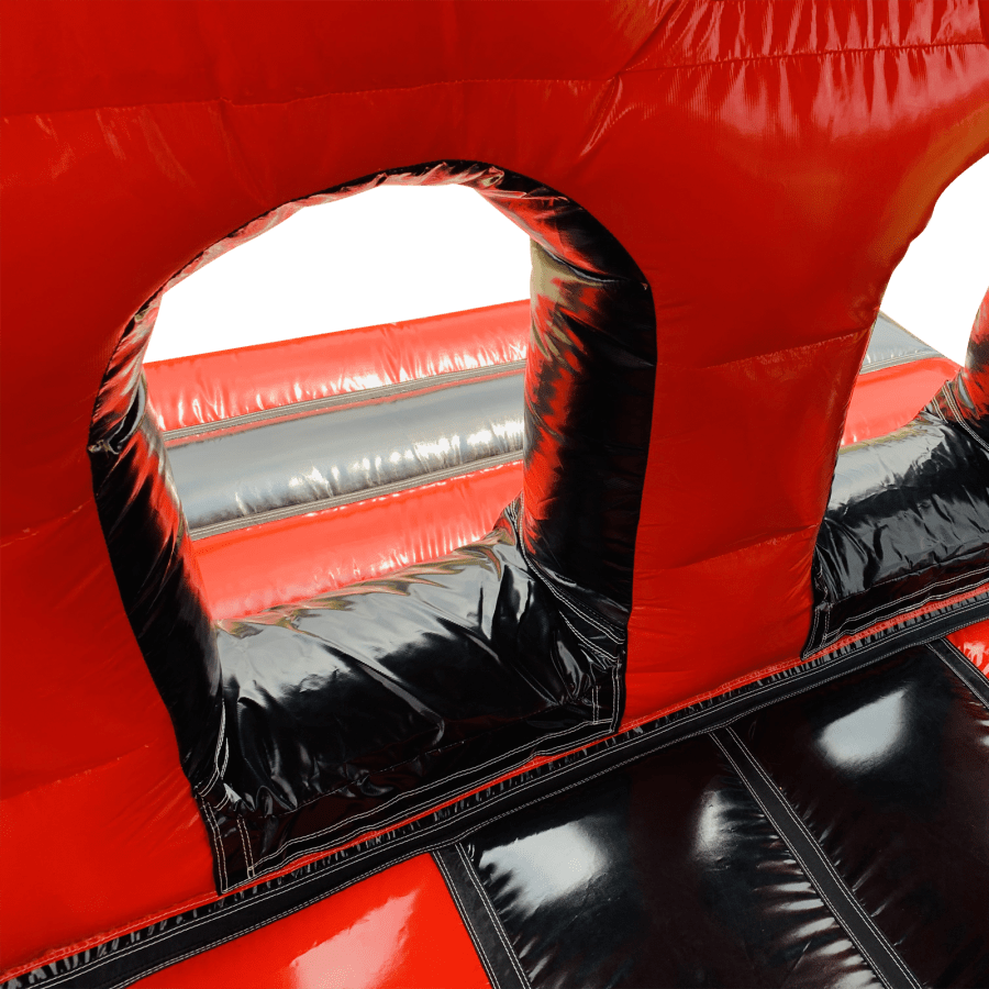 Make your child's day with this modern obstacle section. The inflatable obstacle course offers a safe entrance way with full theming, followed by a series of biff and bash pillars, cool chill out area in the middle, steep ladder climb and a crazy slide out of the end. The obstacle course is the perfect choice for your little one's birthday party school gala, summer fete and works fantastically as a stand alone item or as part of a larger package of matching inflatables.