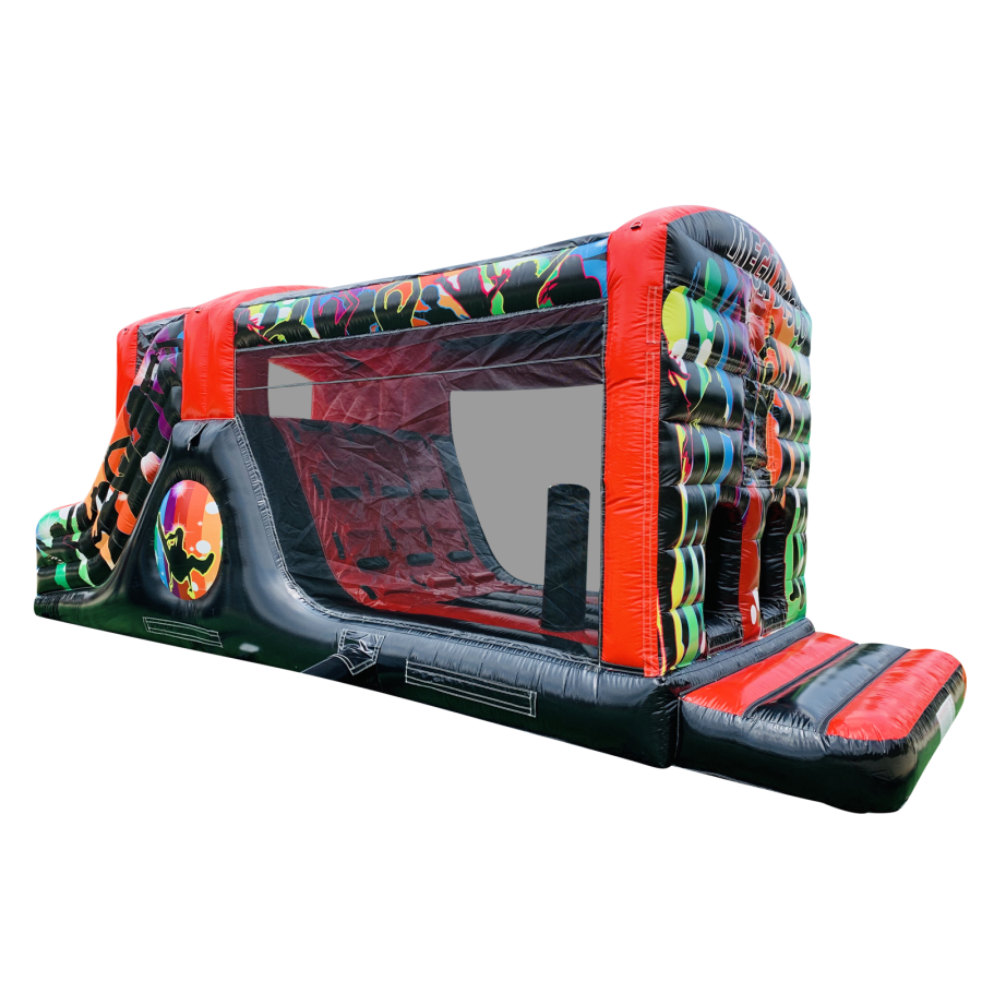 The Adult Fun Run/ mini obstacle course measures a whopping 28ft in length yet is perfect for both indoor and outdoor hire. The artwork themes are very realistic and absolutely fantastic quality and this theme is absolutely loved by all who can see it.