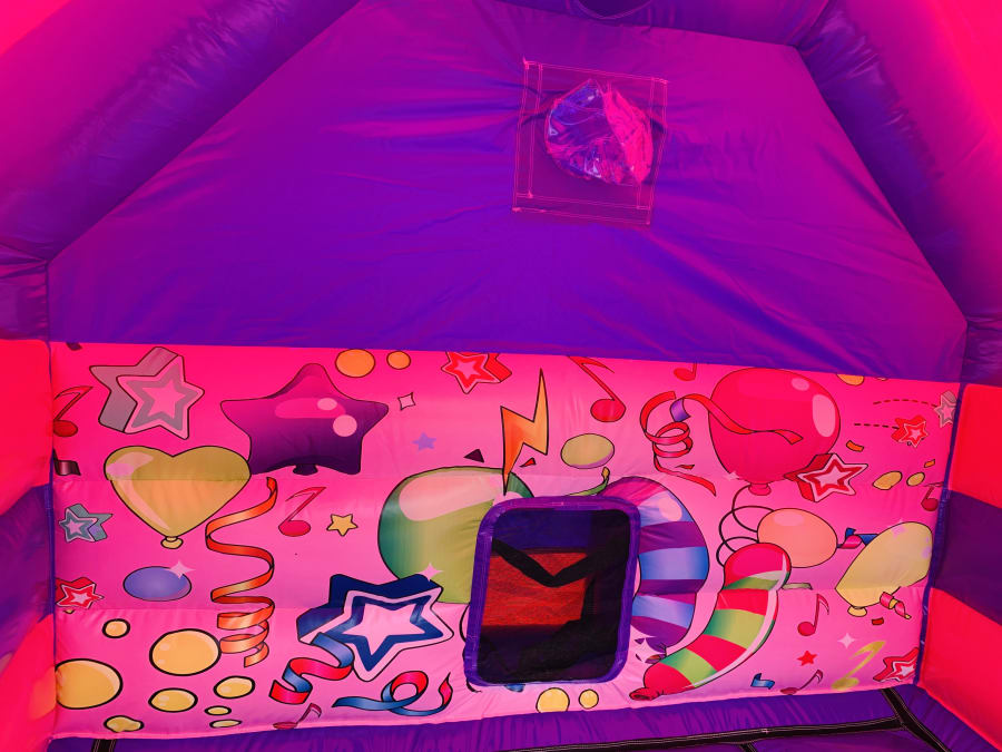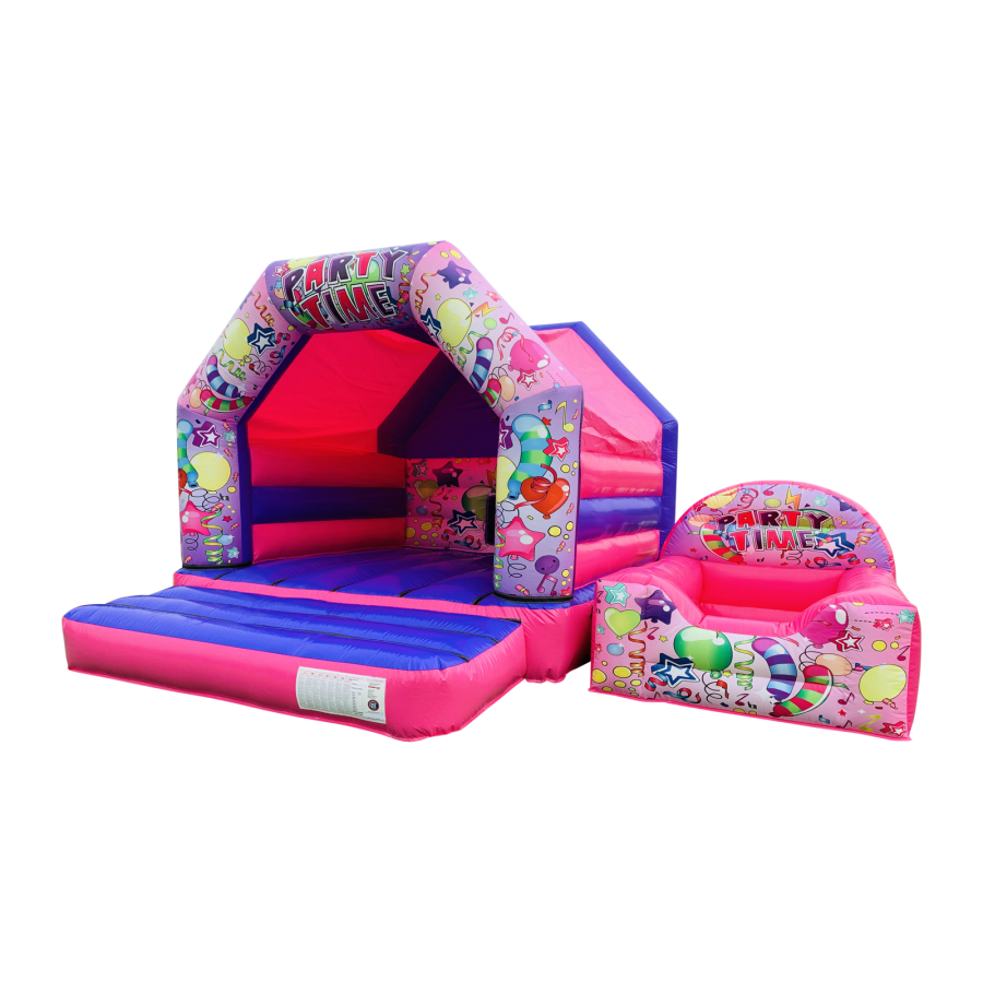 BBOL-164 - 12x15ft A frame with Connecting 8x6ft ballpool - DISCO - (Pink & Purple Partytime)(VPC)