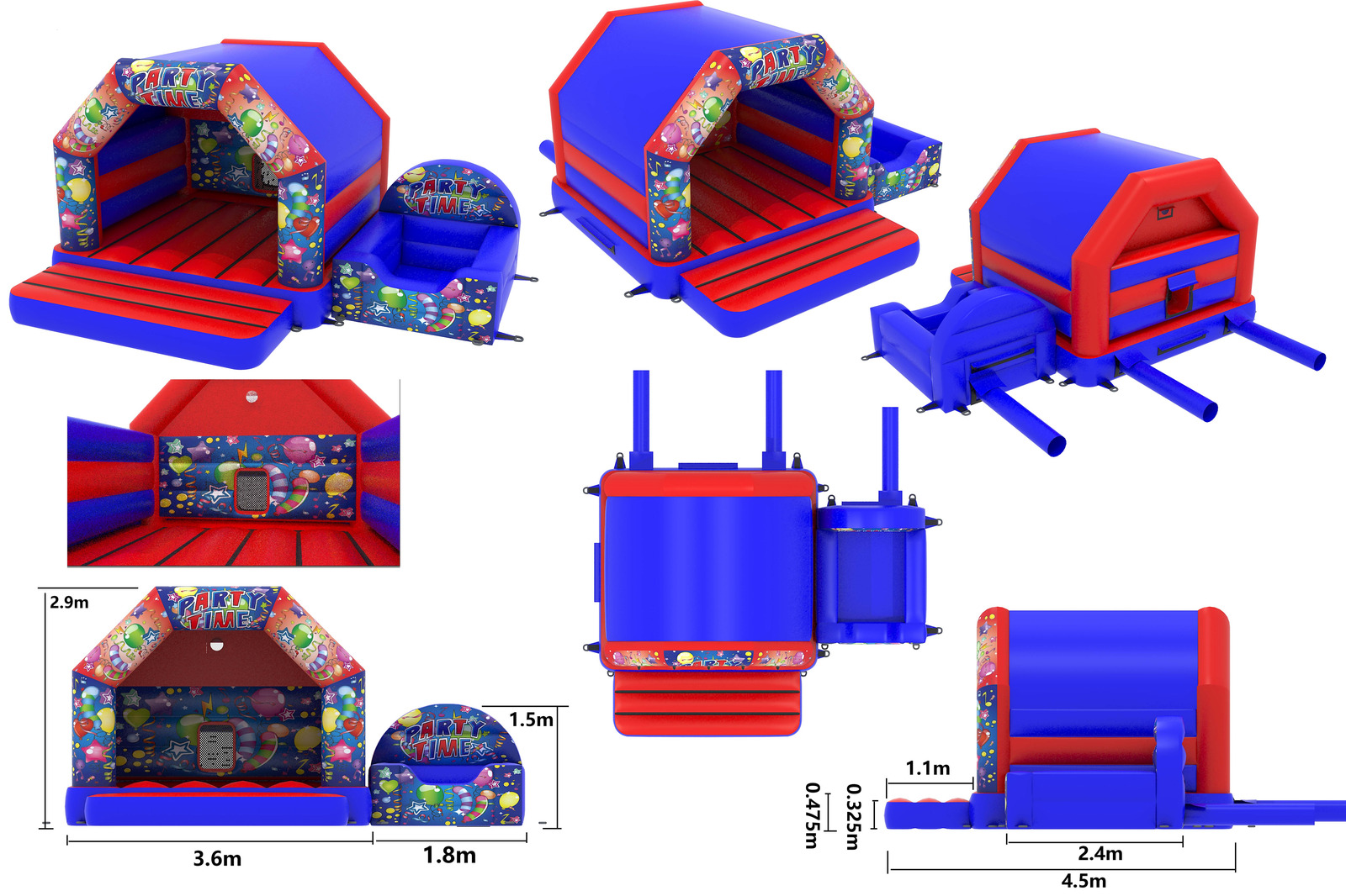 BBOL-164 - 12x15ft A frame with Connecting 8x6ft ballpool - DISCO - (Red & Blue Partytime)(VPC)