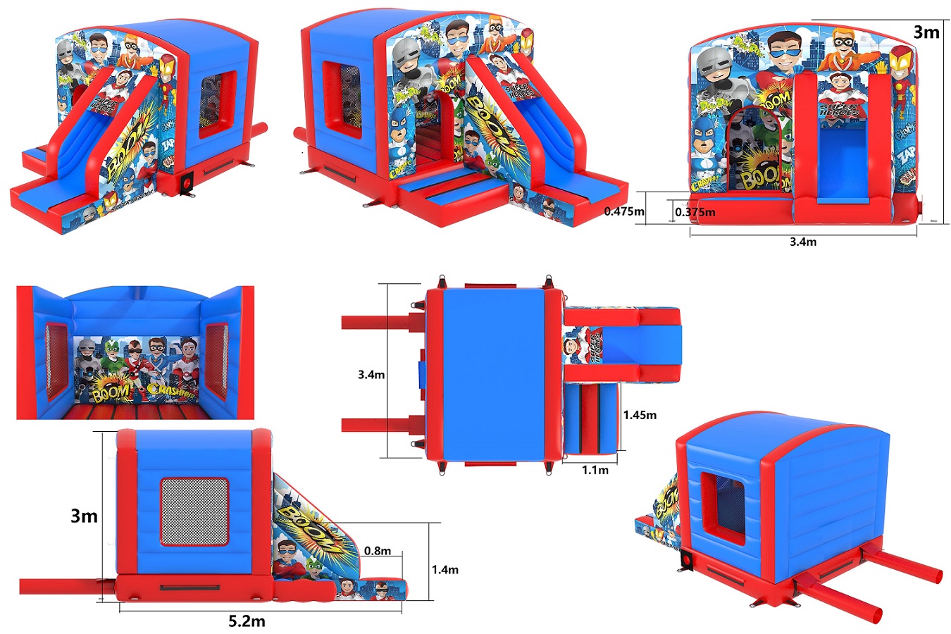 BBOL-211 - 12x17x10.5ft - Front Slide Combo - (Red & Light Blue Superhero) - (Includes light & music pouch) (VPC)