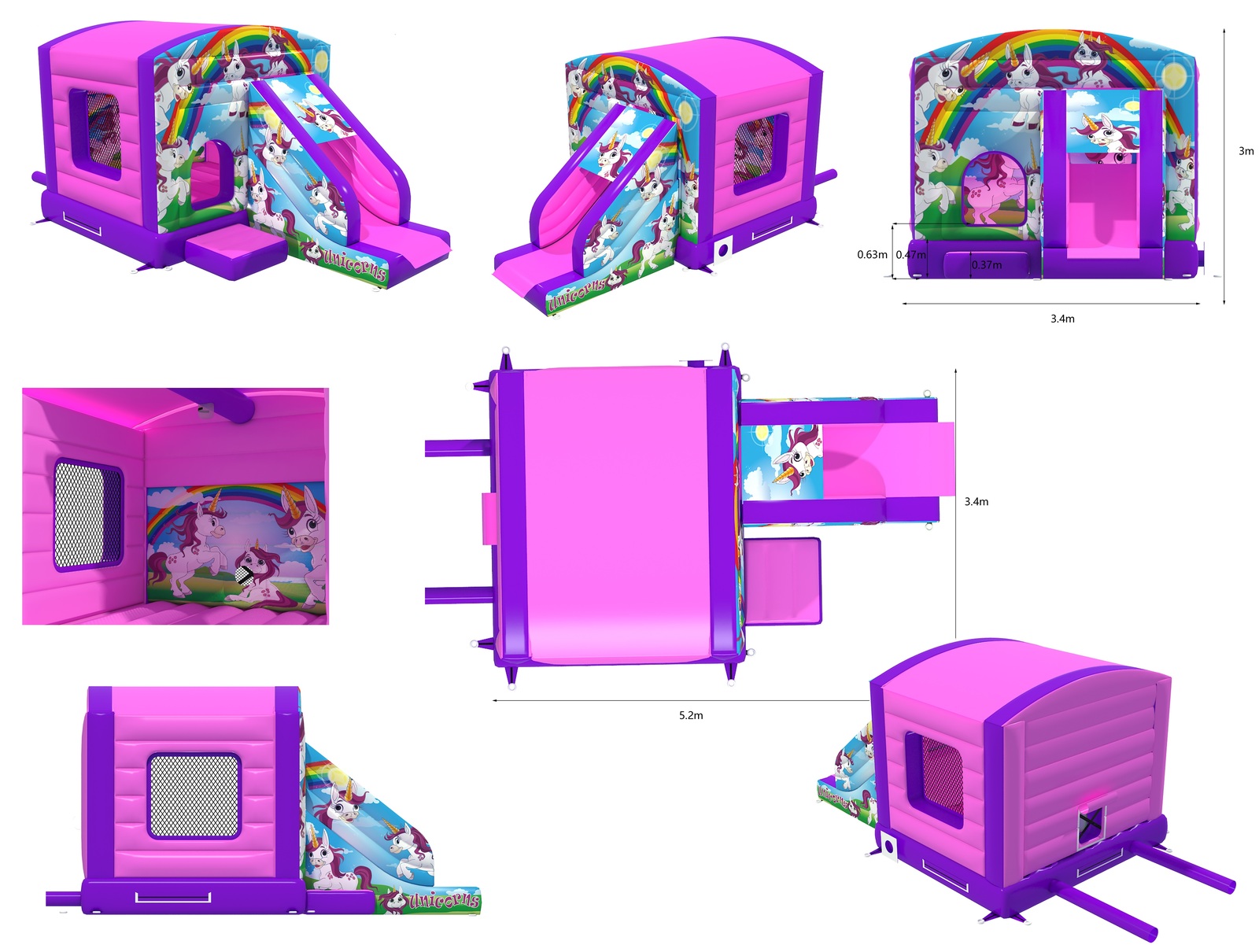 BBOL-211 - 12x17x10.5ft - Front Slide Combo - (Pink & Purple Unicorns) - (Includes light & music pouch) (VPC)