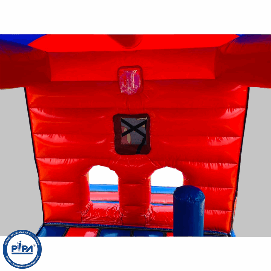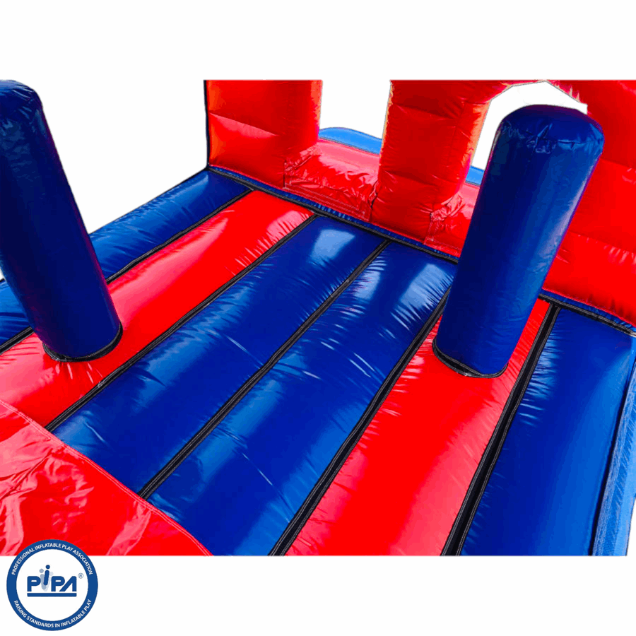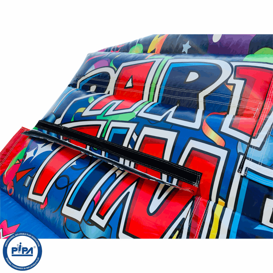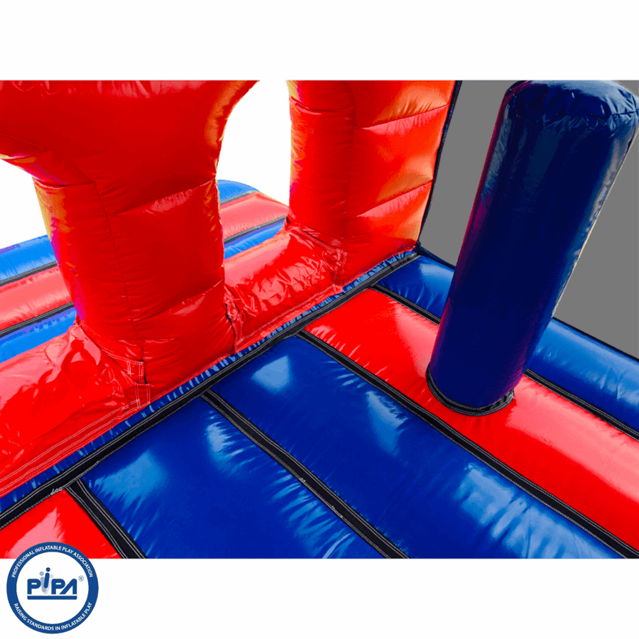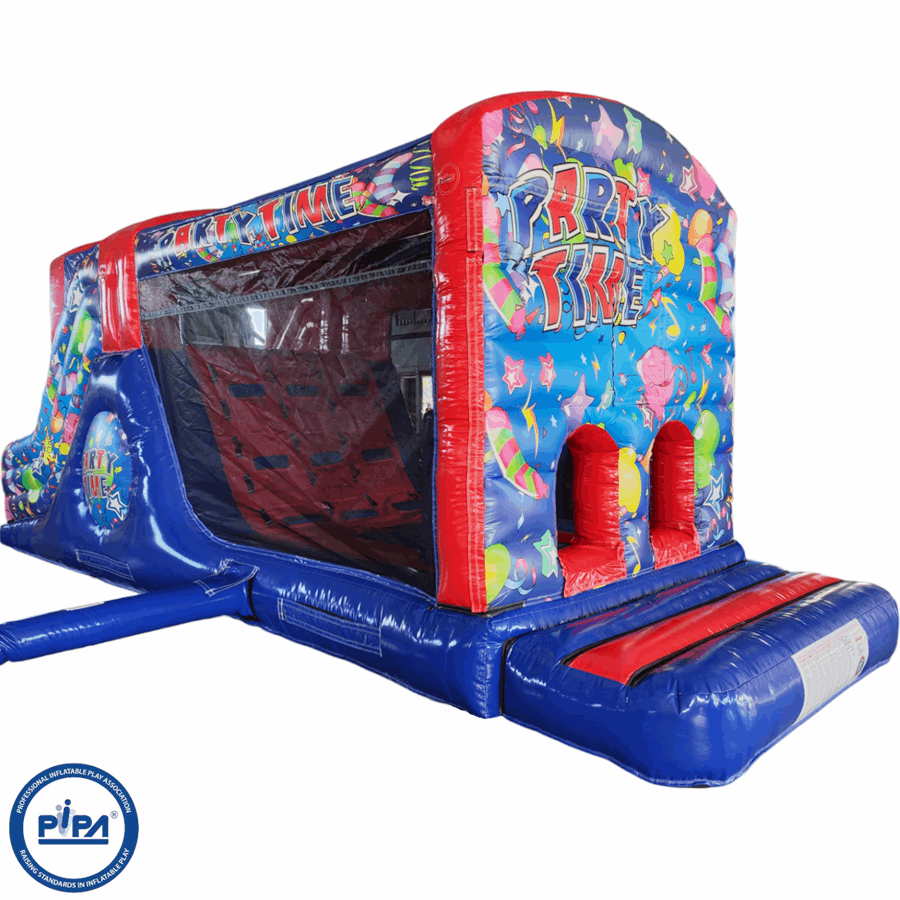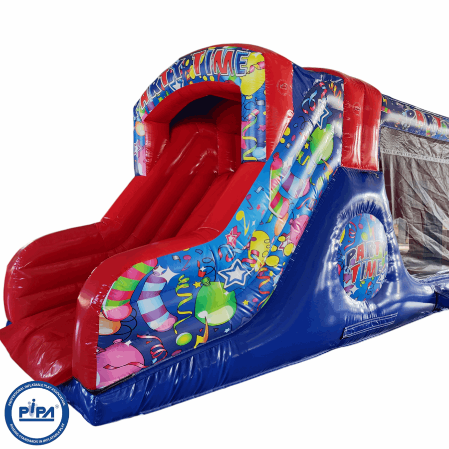 Make your child's day with this modern obstacle section. The inflatable obstacle course offers a safe entrance way with full theming, followed by a series of biff and bash pillars, cool chill out area in the middle, steep ladder climb and a crazy slide out of the end. The obstacle course is the perfect choice for your little one's birthday party school gala, summer fete and works fantastically as a stand alone item or as part of a larger package of matching inflatables.