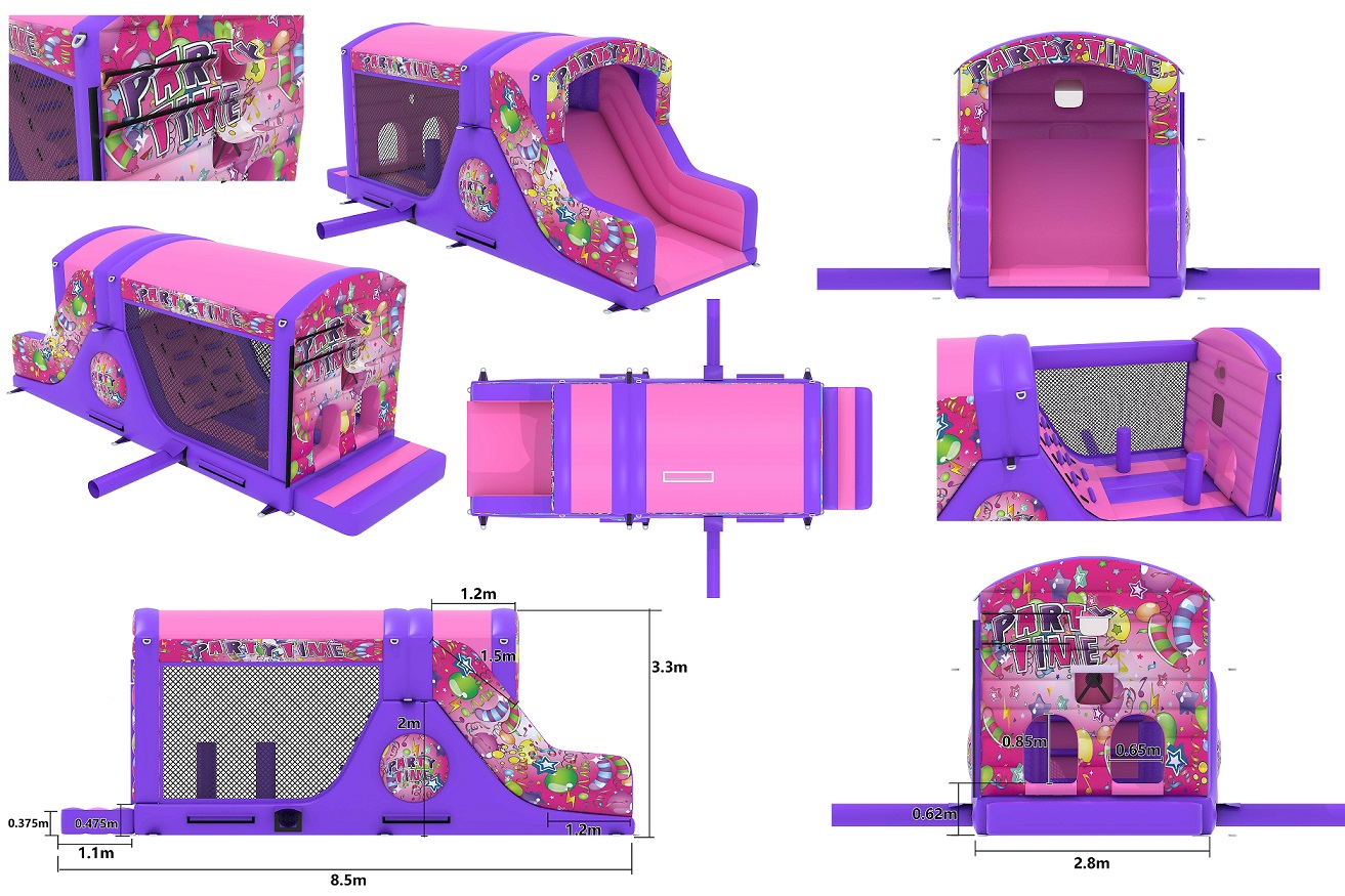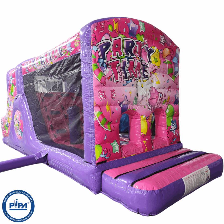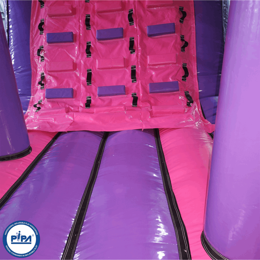 Make your child's day with this modern obstacle section. The inflatable obstacle course offers a safe entrance way with full theming, followed by a series of biff and bash pillars, cool chill out area in the middle, steep ladder climb and a crazy slide out of the end. The obstacle course is the perfect choice for your little one's birthday party school gala, summer fete and works fantastically as a stand alone item or as part of a larger package of matching inflatables.