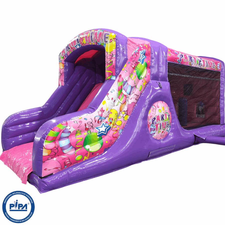 The fun run is ideal for all those little one's wanting to celebrate their big day. An absolute party favourite, it can also be used for other occasions such as weddings, christening and many other fun days and can accommodate for young toddlers to young teenagers. This fun run is designed with a large assault like/ bouncing area but also with a slide so it gives the users that little extra excitement of a slide AND biff and bash pillows with some foam block square steps at the end to help get the users to the top of the slide.