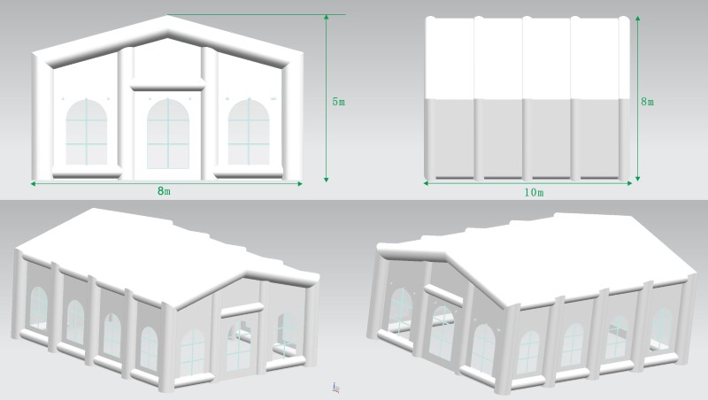 - Approximate dimensions (Metric) - 10.8m x 8.0m x 8.0m. (L/W/H)