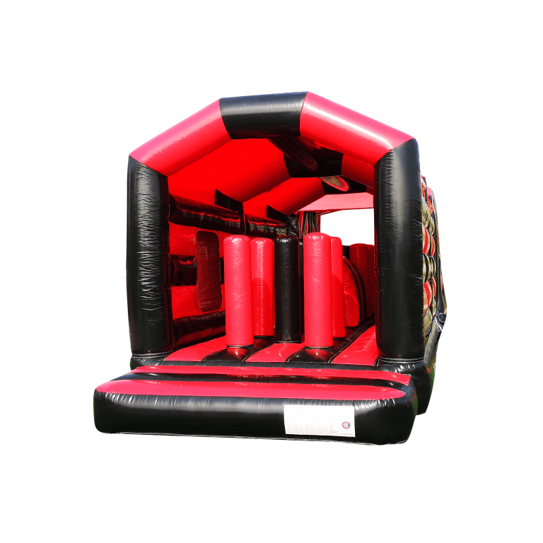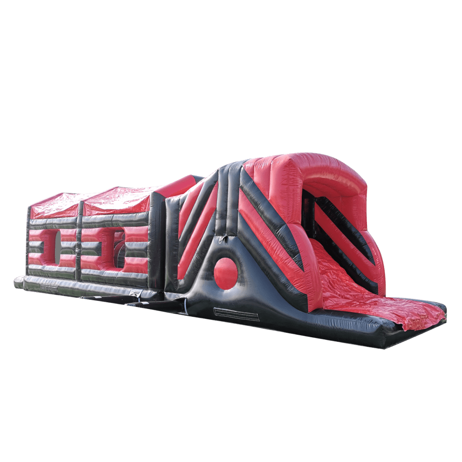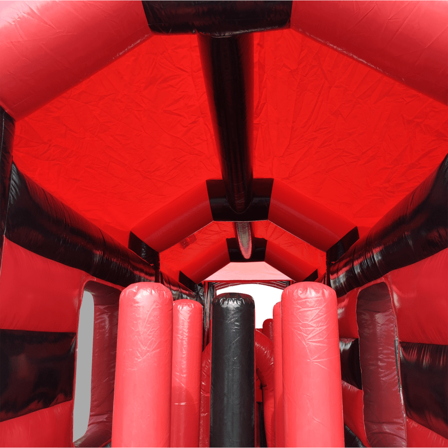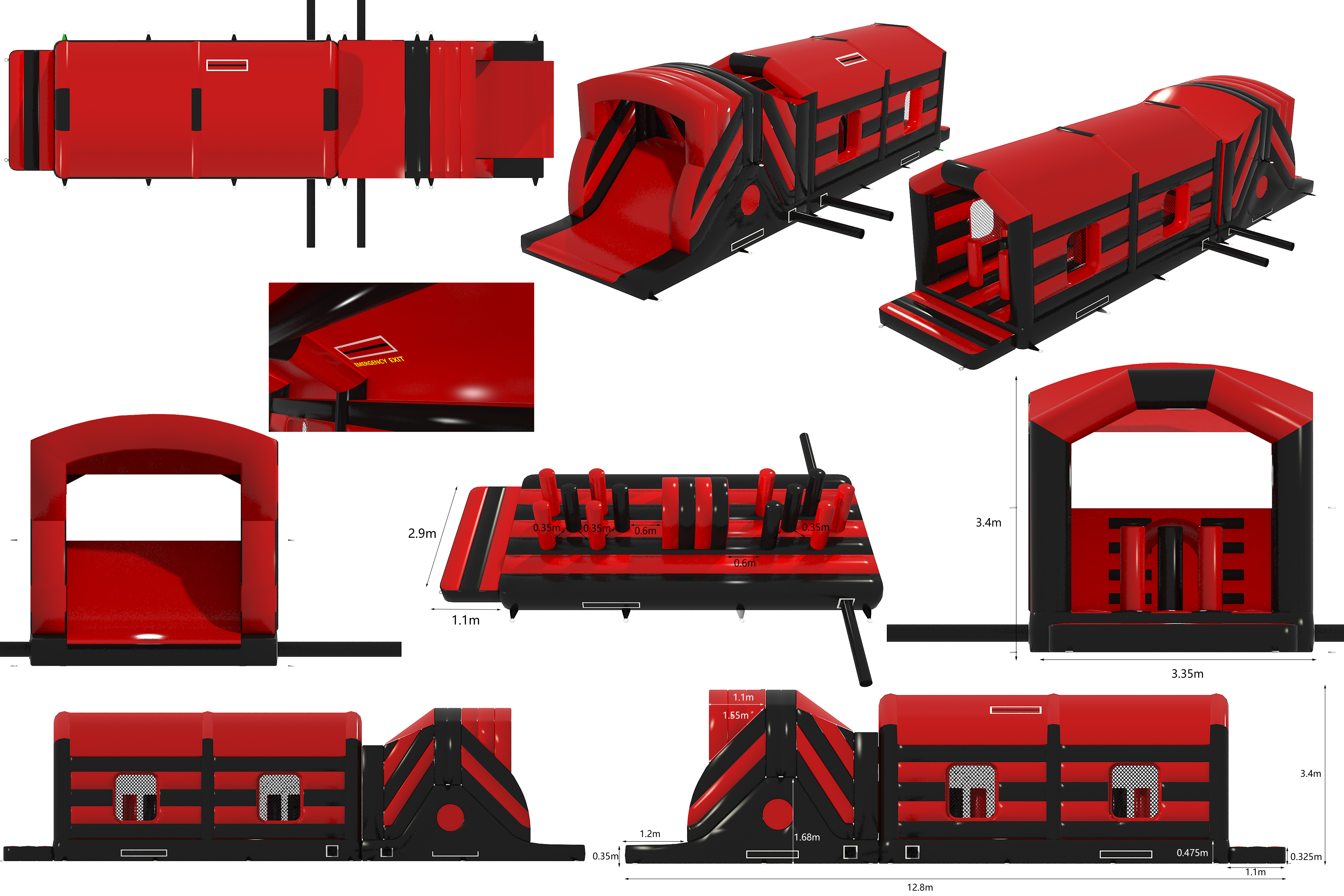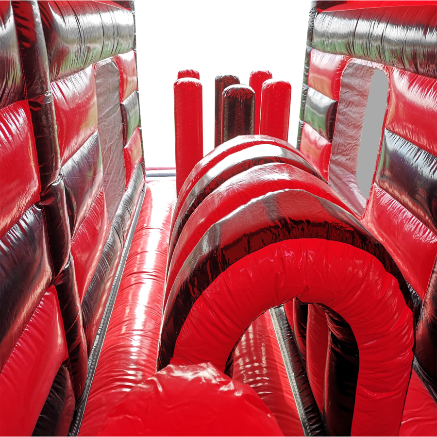 The slide and obstacle section are 100% compliant as a stand-alone inflatable section for hire and are fully extendable. This allows for customization and flexibility in setting up the obstacle course to fit the specific needs and requirements of your event. The latest artwork theme is absolutely fantastic and is part of the high adrenaline games range, making this inflatable obstacle course the perfect choice for your event.