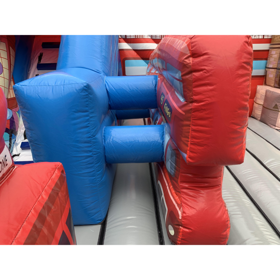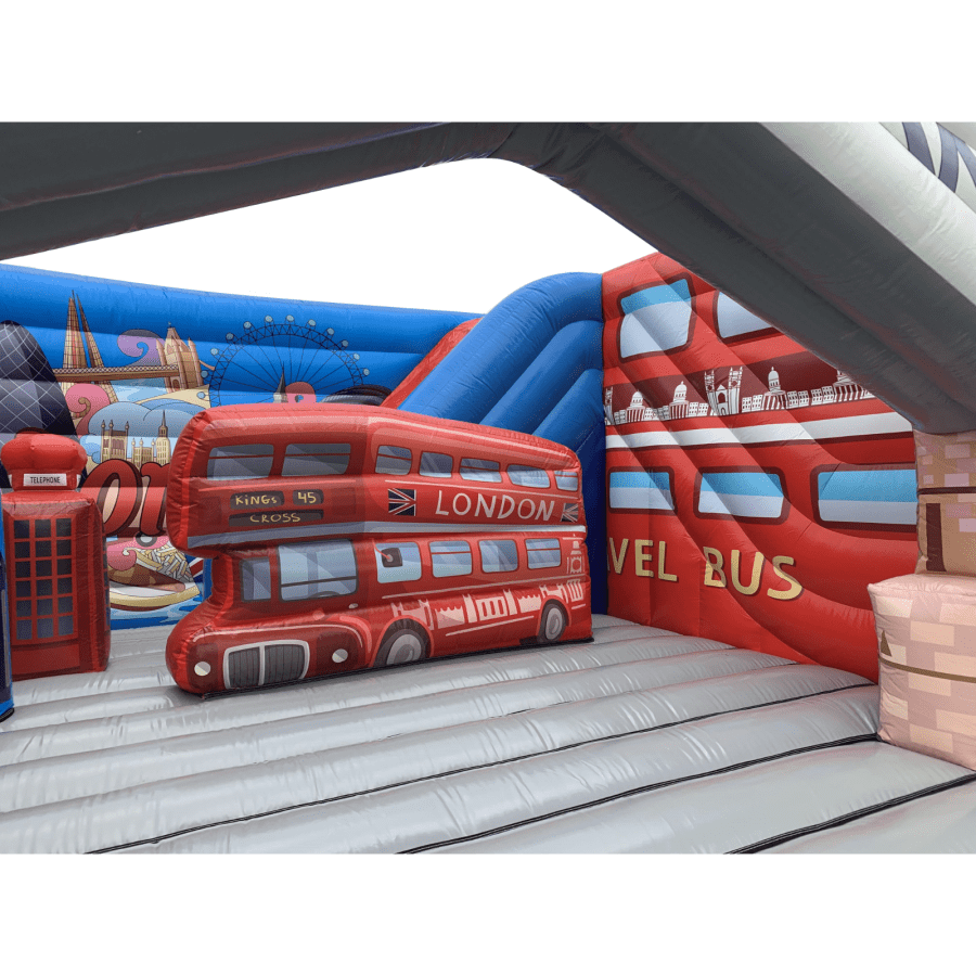 The inflatable Double decker bus and london scene is a very manageable length of just under 23ft long, 16.5ft high makes it idea for sports hall's or the larger indoor venues, this would look spectacular out on the field too. The bright theme is very realistic and absolutely fantastic quality, ensuring this inflatable is perfect to make anyone big day that extra bit special.
