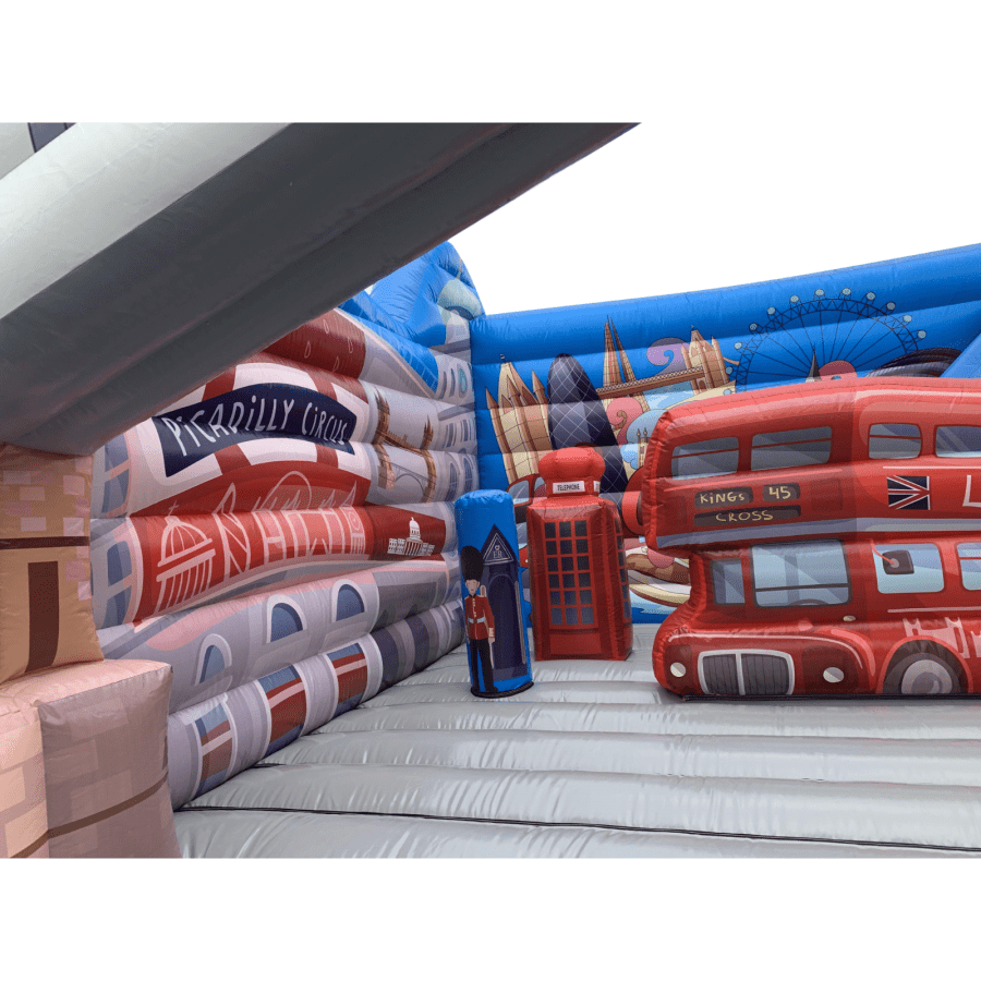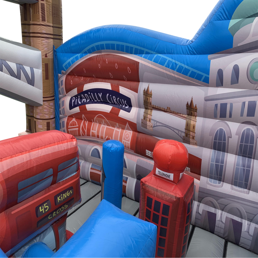 The inflatable London Scene for sale is one of only 2 in Europe and is by far the most detailed version available. The attention to details right down to the bus timetable, phone box graphics, queens guard uniform and other famous capital landmarks reproduced in great detail ensuring an unrivalled product over your competitors. With hire fees ranging from £600 to £1,000 per event this really is a phenomenal hire piece to add to your hire fleet.