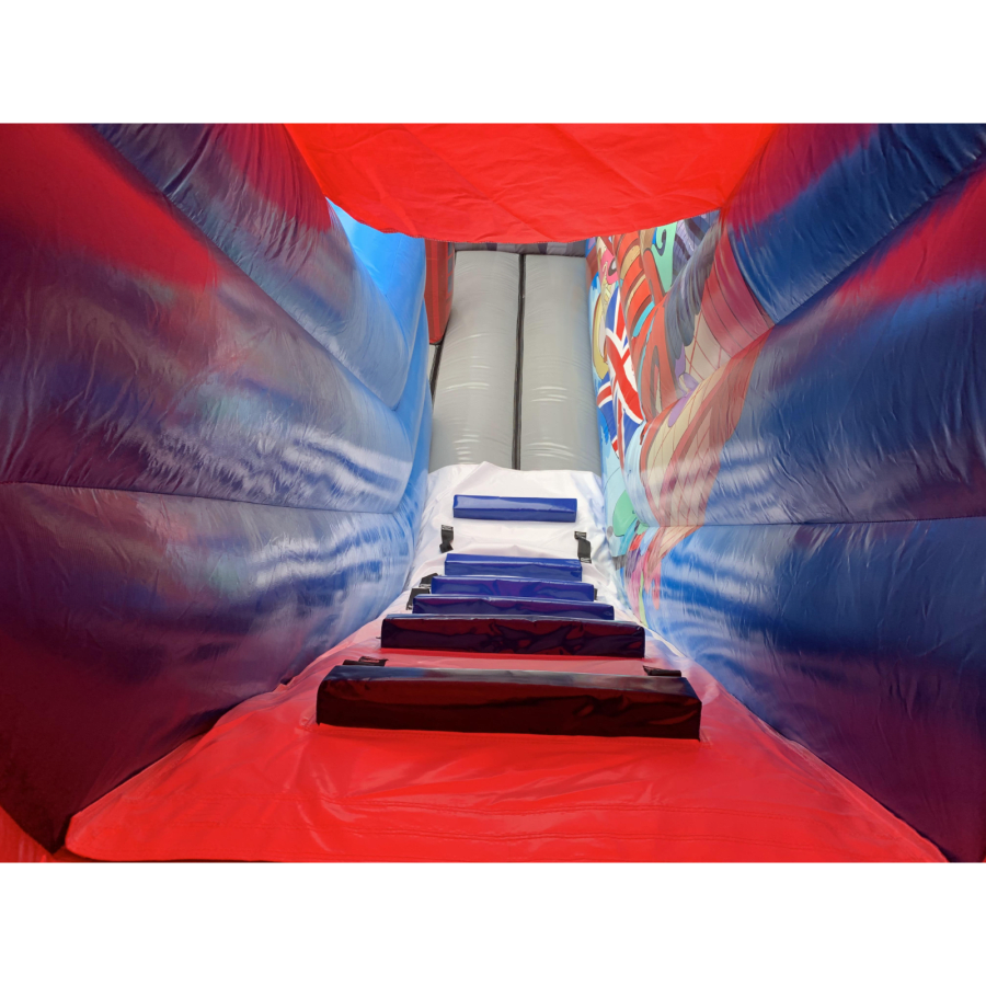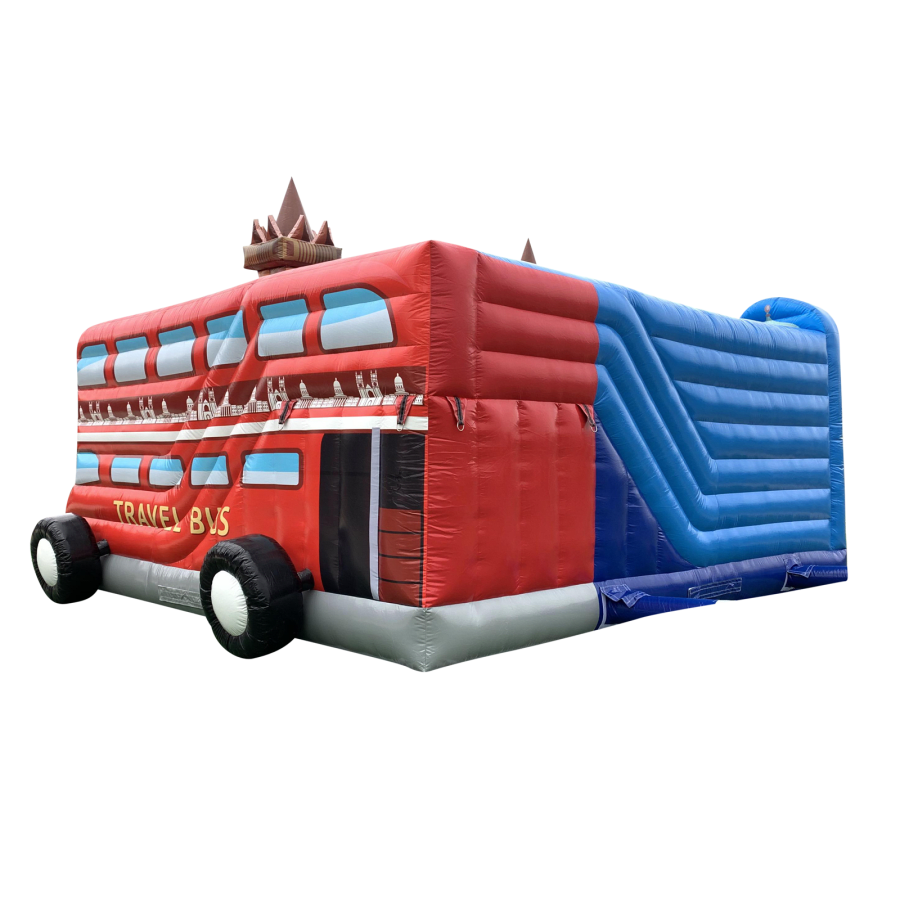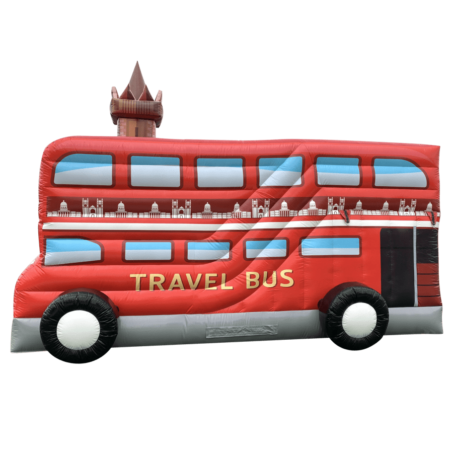 The inflatable features a whopping 23ft bouncing bed with a hidden slide feature inside the main inflatable bus structure to keep the guests constantly entertained throughout. The inflatable double decker bus is the perfect combination for any party, venue or occasion and is ideal for all age groups. This highly detailed piece of equipment provides the perfect competition to enjoy with friends, whilst the slide provides entertainment for the rest of the guests at the same time and certainly won't break the bank.