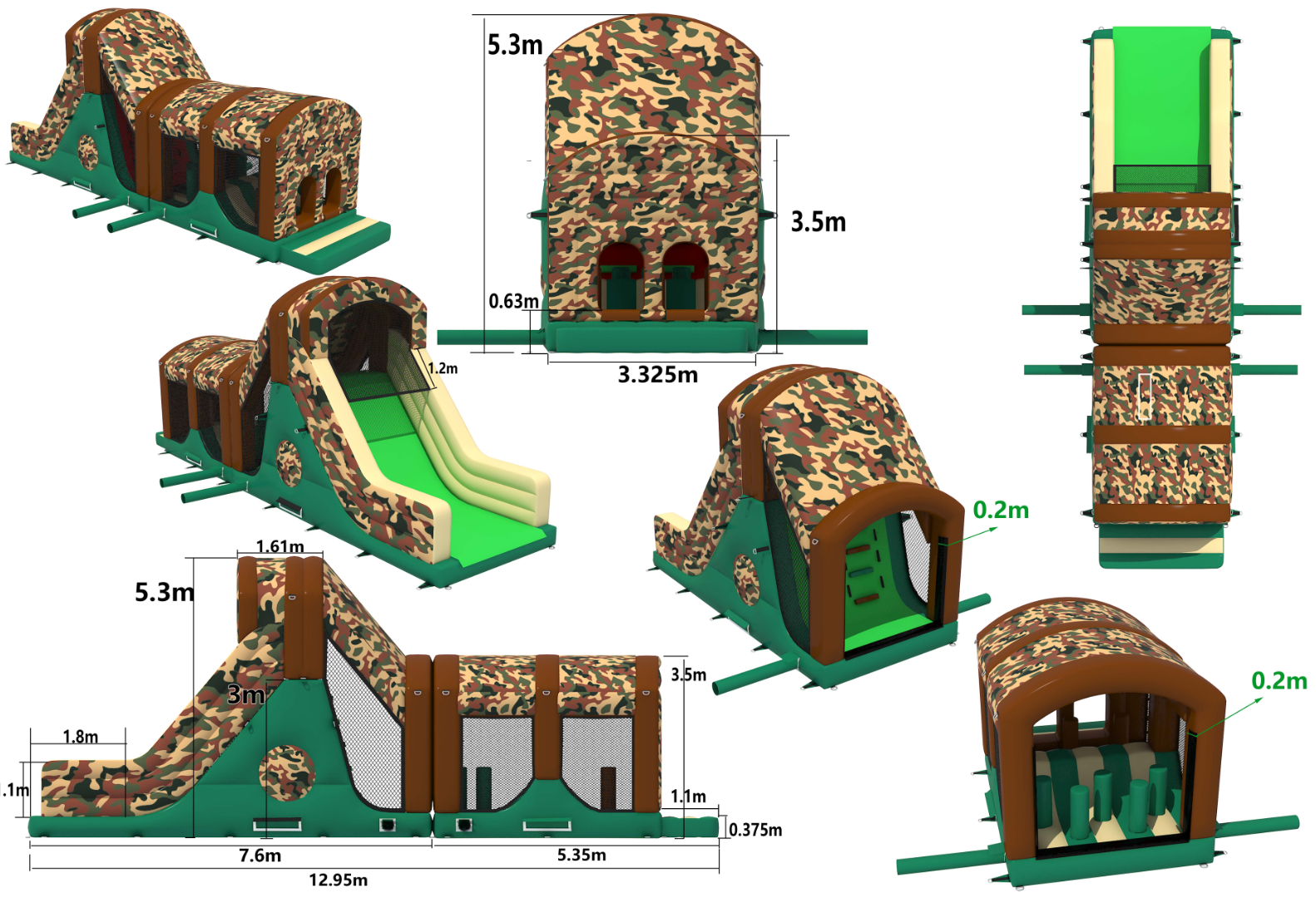 BBOL-051 - 10ft slide - 40x11x15ft - 2 part ADULT Build Your Own Giant Obstacle - (Green, Brown & Sand Camouflage UK)