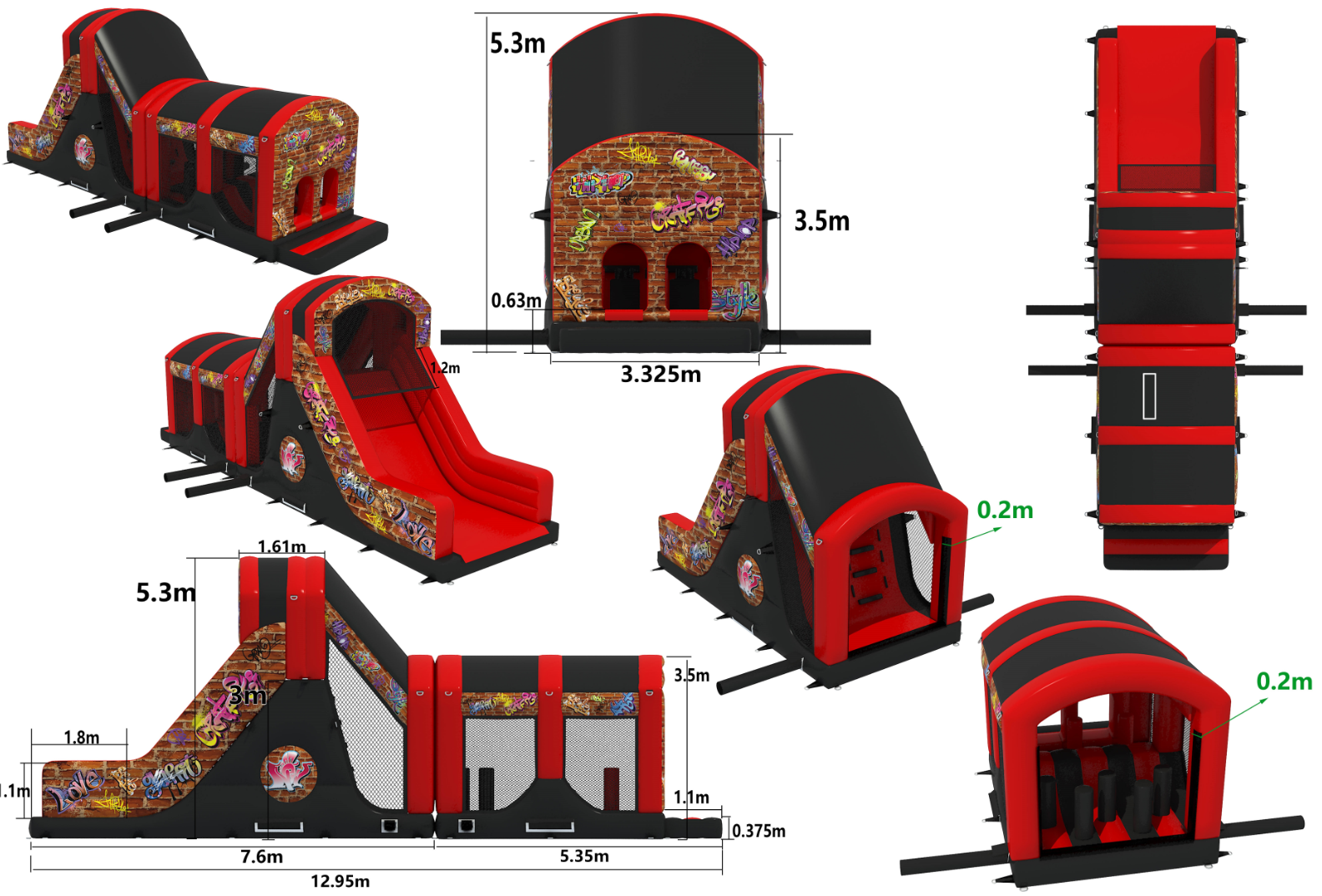 BBOL-051 - 10ft slide - 40x11x15ft - 2 part ADULT Build Your Own Giant Obstacle - (Red & Black Graffiti)