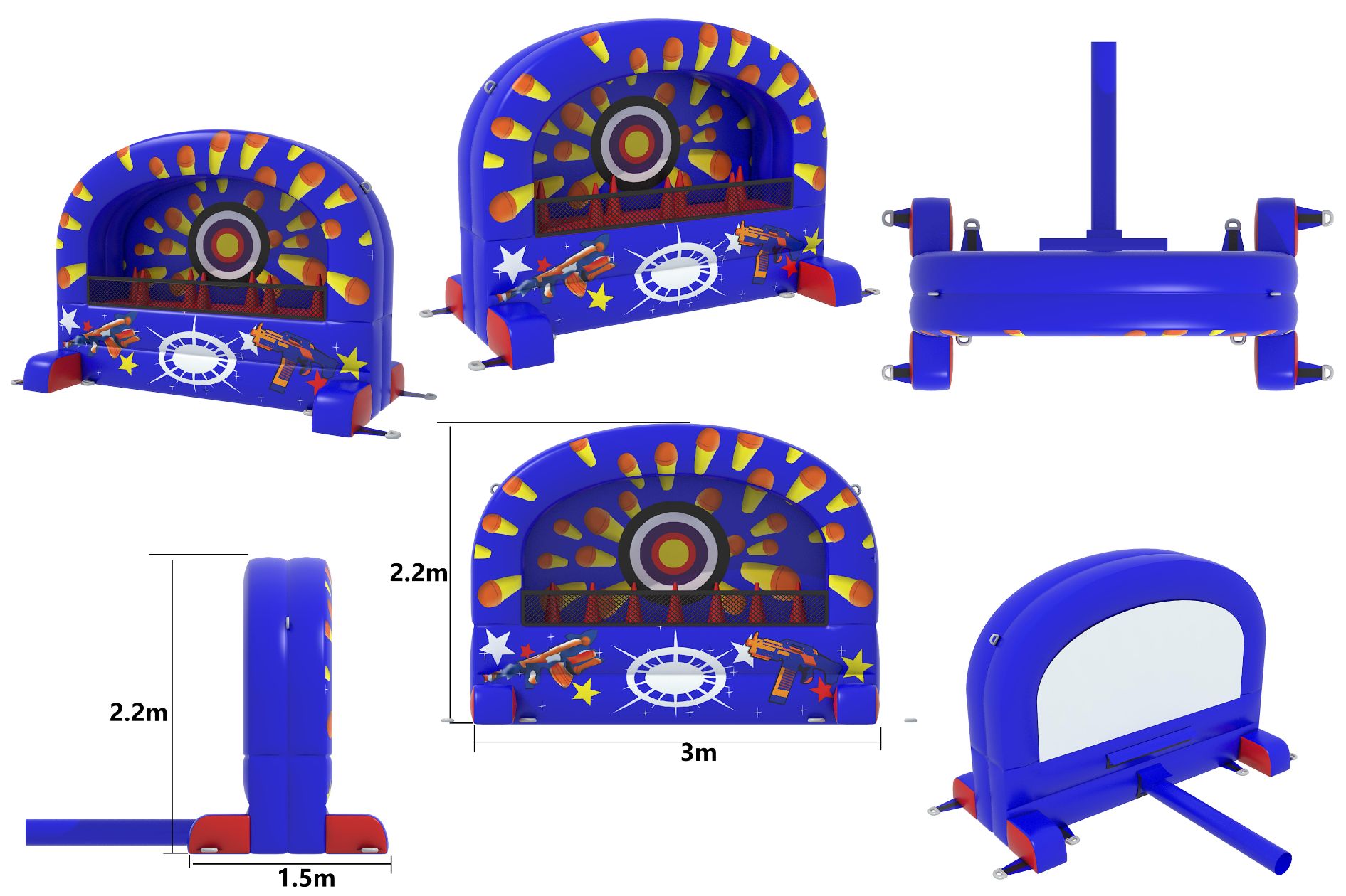 This season welcomes one of the hottest new games on the market. The Nerf shootout wall built specifically for us in our own top secret manufacturing facility at www.better-bounce.co.uk. The all new Nerf shooting game is a modern twist on an old school favourite cork gun range/ Tin can alley but much safer. The inflatable tin can alley is a fantastic way to draw in additional visitors to your event, fete, fair, school gala, pub, club, shopping centre or simply for a bit of light-hearted fun at a private party event or birthday bash. It's a fantastic team game and can be extremely competitive for all three shooters.