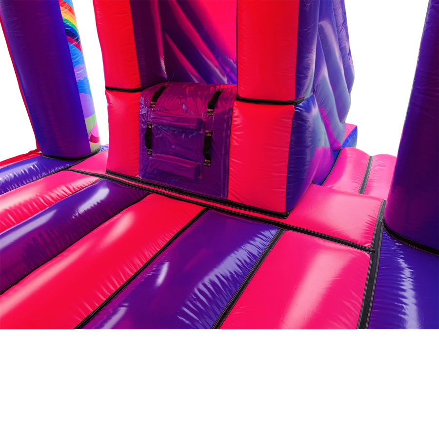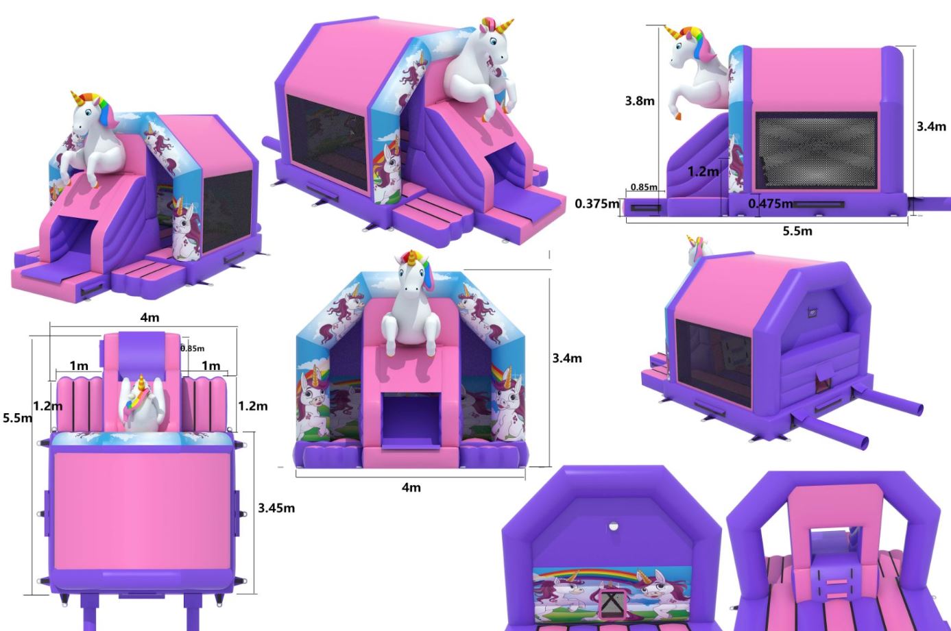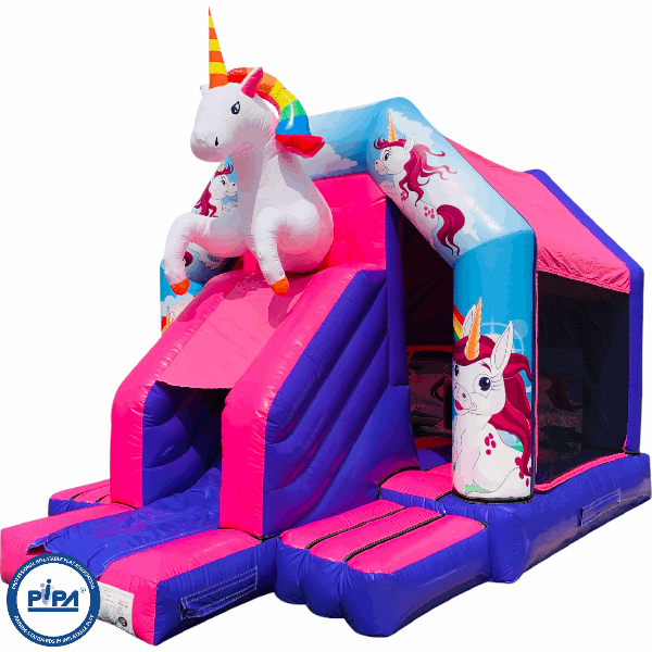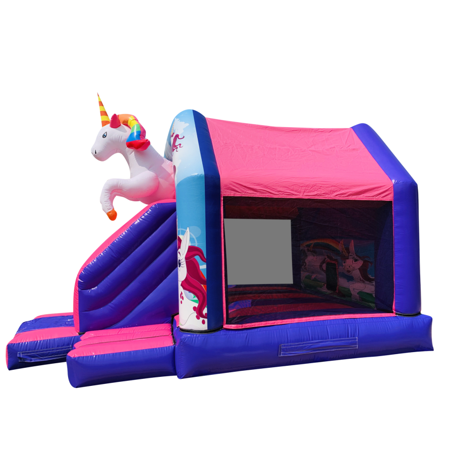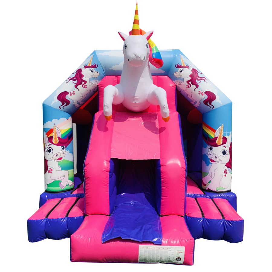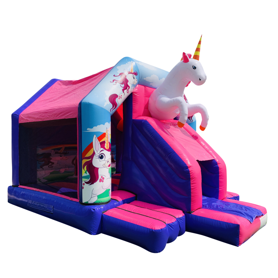 The bouncy castle with slide combines 2 of the most popular items we manufacture in one extraordinary inflatable where space is at a premium. The bouncy castle with slide combo is the perfect combination slide for any party, venue or occasion and is ideal for all age groups. This brightly coloured piece of equipment provides the perfect bouncing area to bounce along with friends, whilst the slide provides entertainment for the rest of the guests at the same time and certainly won't break the bank for the creativity it brings. This will be a battery powered design as standard but can be pre-wired upon request.