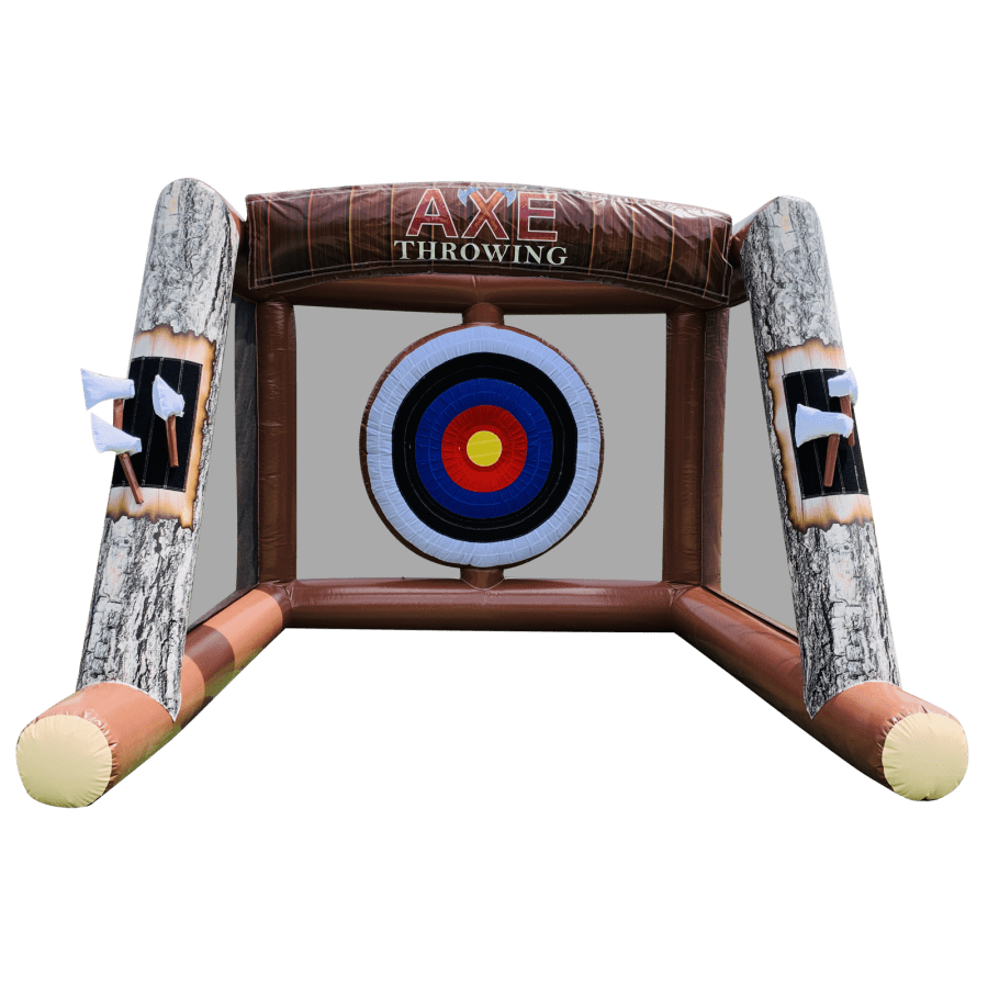 The axe throwing game is a double bubble of trouble and accommodates both a set of throwing axes and a set of screw on velcro dart tips,making the game truly versatile and cover all age range and bases.