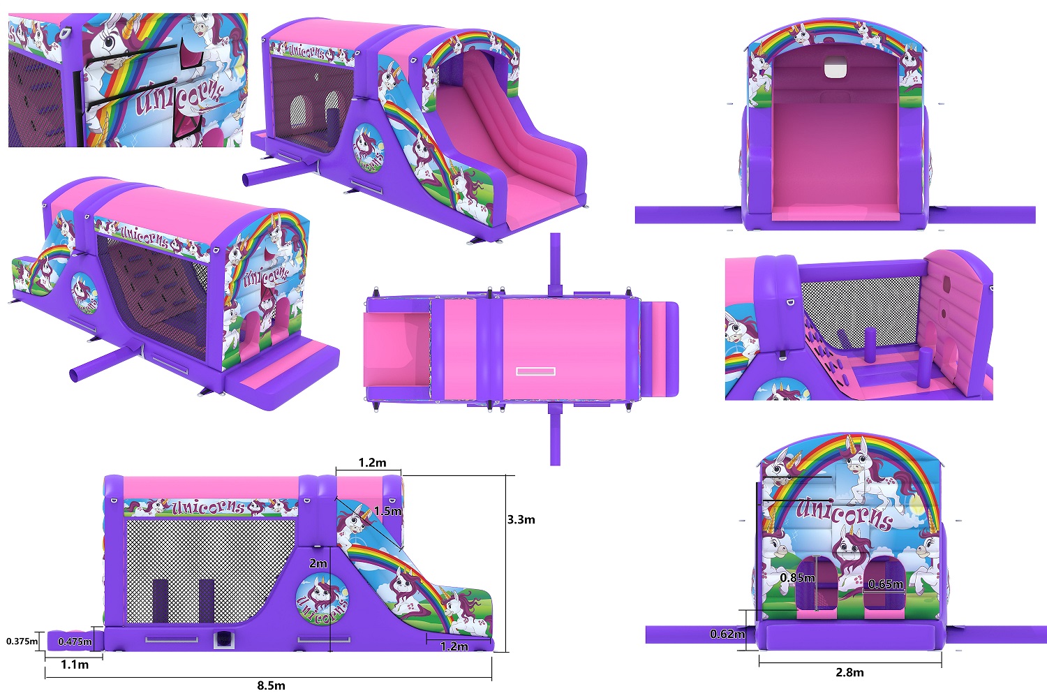 BBOL-100 - 15x10x13ft - 6.5ft Platform slide - (Pink & Purple Unicorns)