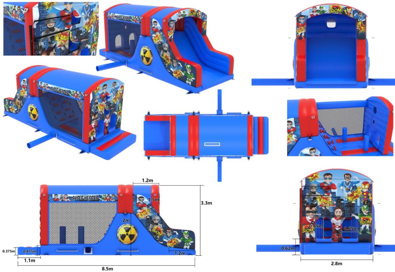 BBOL-133 - 20x12x19ft - 10ft platform Super slide - (Red & Blue Hero)