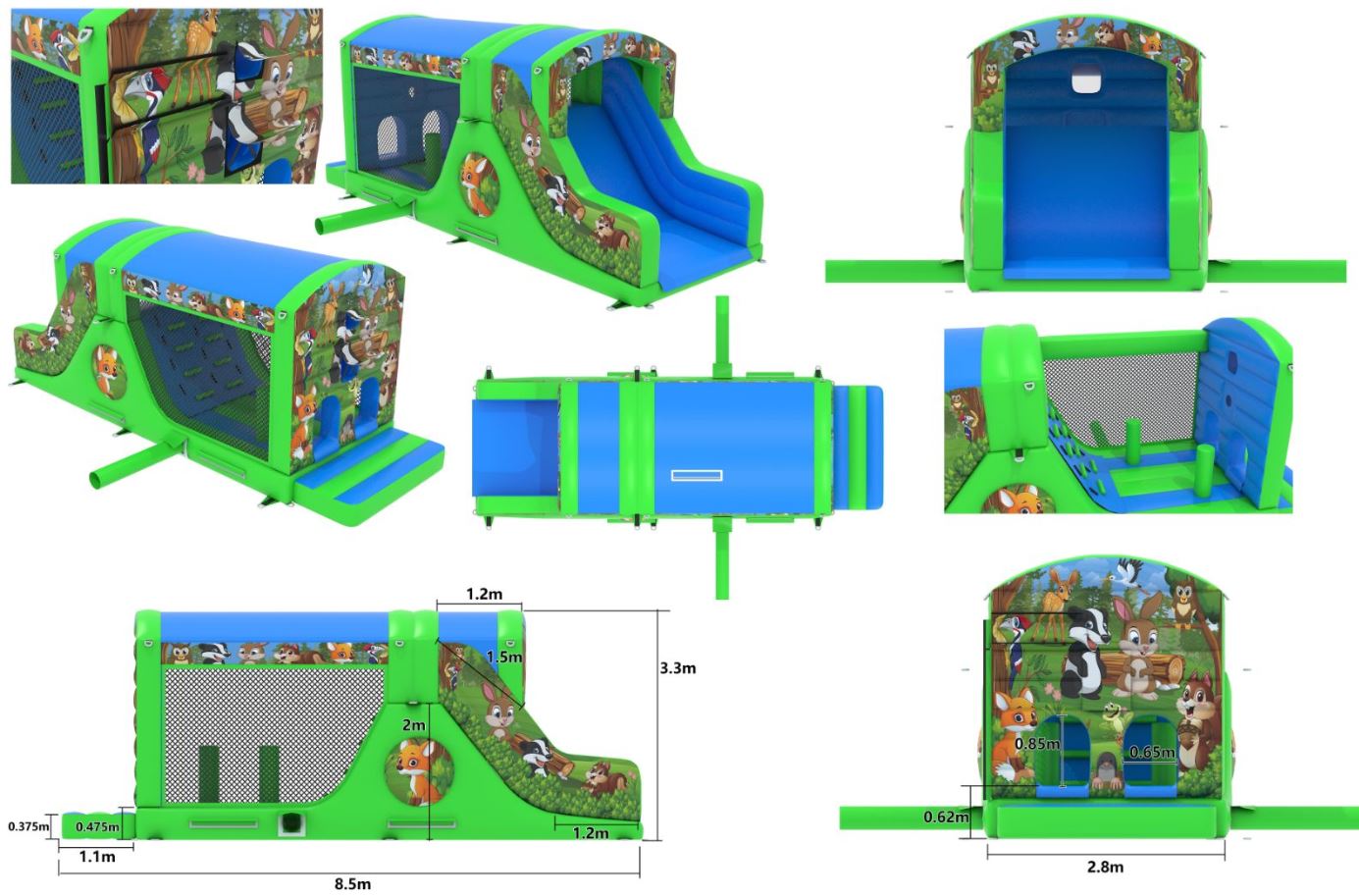 The Adult Fun Run/ mini obstacle course measures a whopping 28ft in length yet is perfect for both indoor and outdoor hire. The artwork themes are very realistic and absolutely fantastic quality and this theme is absolutely loved by all who can see it.
