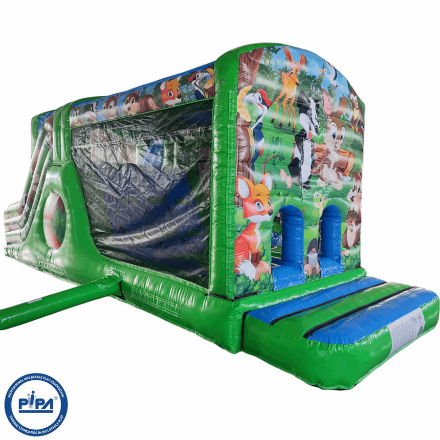 BB-044 - 18x12x13.5ft - 8ft Platform Slide - (Netted Roof) - (Green Woodlands)