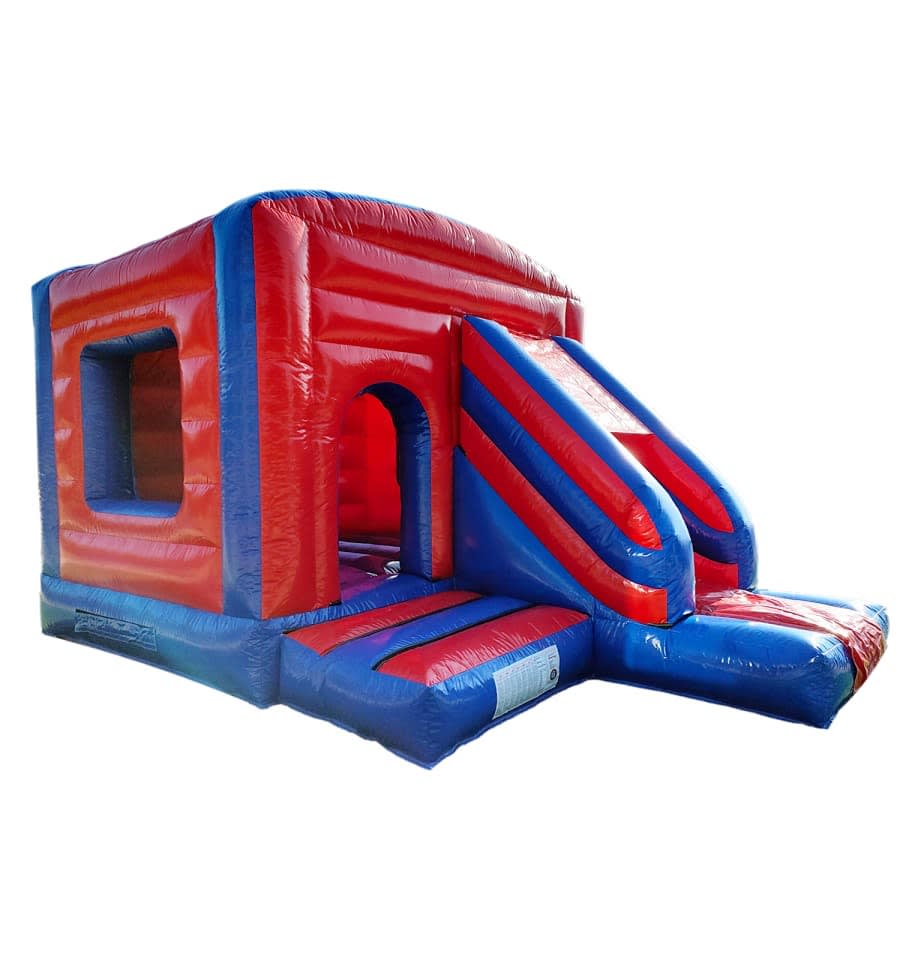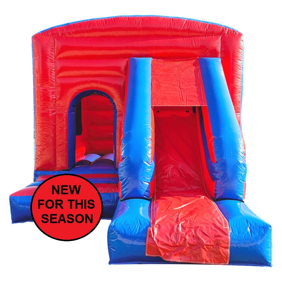 The 12ft x 17ft Bouncy castle with slide is a fantastic new addition that can be added to your fleet. The bouncy castle with slide combines 2 of the most popular items in one extraordinary inflatable where space is at a premium. The bouncy castle with slide combo is the perfect combination slide for any party, venue or occasion and is ideal for all age groups. This brightly coloured piece of equipment provides the perfect bouncing area to bounce along with friends, whilst the slide provides entertainment for the rest of the guests at the same time and certainly won't break the bank.