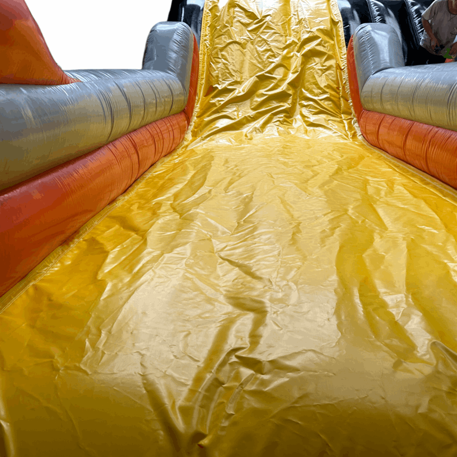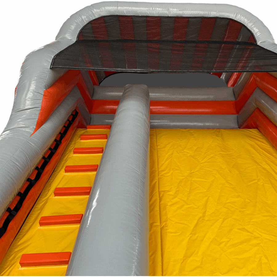 - The platform on this inflatable slide has been reduced in width by 60% to accommodate single-file use by children, reducing weight by approximately 45kg.
