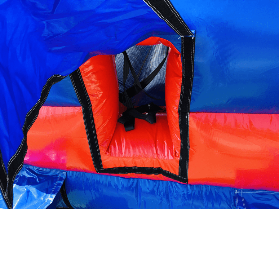 The disco ready inflatable comes complete with speaker holding system and light holder pocked with easy access for cable management if required (Not supplied) The speaker pocket is located in a position that is well protected and hidden away from small fingers yet still bellows the sound out into the inflatable.