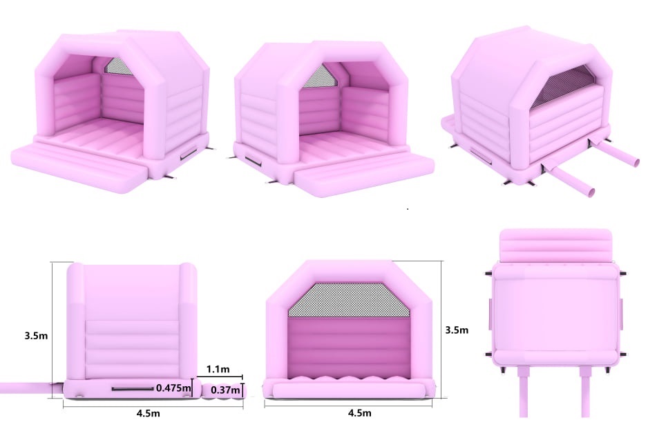 The pastel coloured bouncy Castle offers a large safety step at the front which makes it easy for getting on and off the inflatable safely. The built-in rain cover protects the users from light showers and strong sunlight, depending on the time of year, making it perfect for all ages that may want to hire from you.
