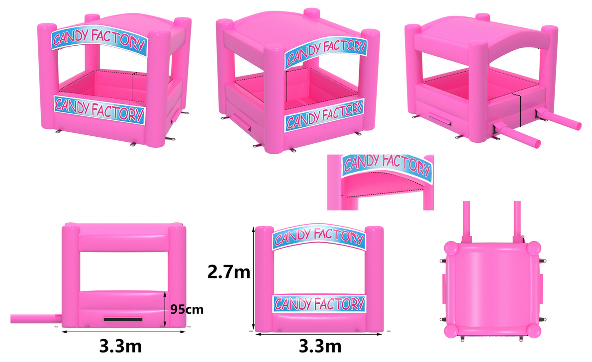 The inflatable sweet shop can be manufactured in a range of sizes, colors, and be branded accordingly to match your company or event. You can add your logo or custom graphics to make your inflatable stand out from the crowd. The branding can be customized with velcro replacement panels to cater for merchandise shopping and anything else.