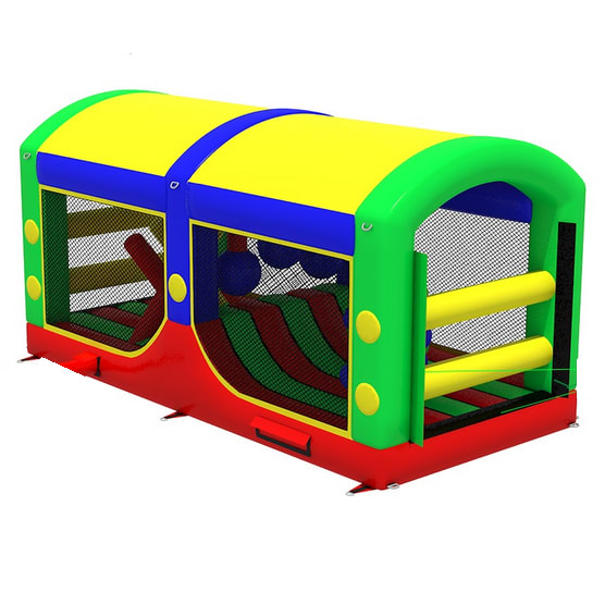 All extension pieces are designed to be located in the middle of the obstacle course and this exact listing is for 1x inflatable extension compromising of a set of entry cross mangles, followed by some X piece obstacles in the main section. Next up is the slippy hump midway with overhanging wrecking balls to negotiate and down the opposite side of the hump. Next up is the T coggers, followed swiftly with another set of Cross mangles at the end that really aren't as easy as they first look! The piece is universal so can be rotated to aid with a quick and easy set up. The blower tubes are located next to one another to give a better set up on site in terms of blower and cable management.
