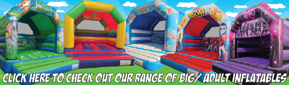 Each inflatable in stock is listed below has a more detailed information section giving specific details such as height, length, width, maximum number of children/ adults, specific age ranges and power requirements and other vital statistics to help you make the right choice. This information can be found by simply clicking on the inflatable for sale in the grid below.