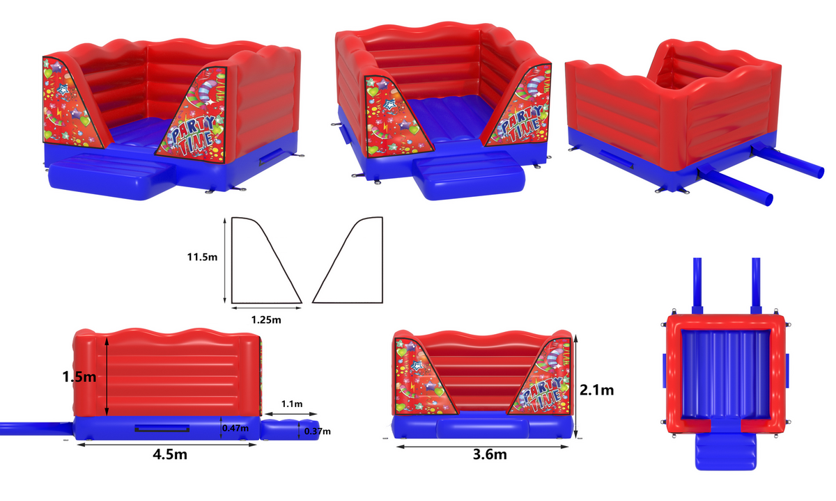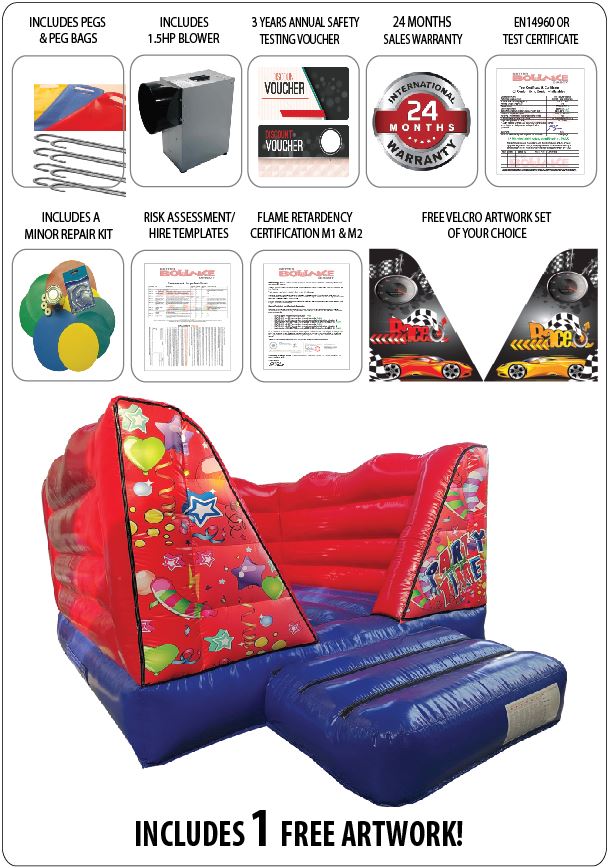 The parents absolutely love this new design at venues and its size means it will fit in almost all venues, the castle incorporates Biff and Bash pillows where necessary giving hours of entertainment for all children.
