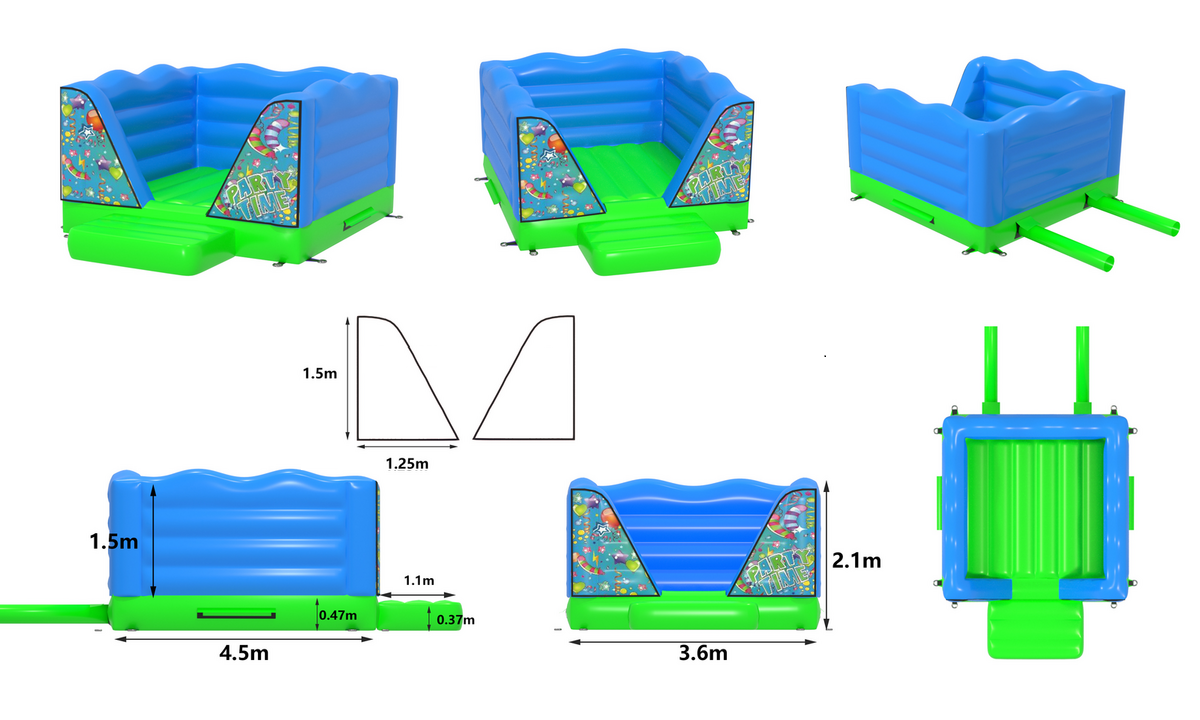 The parents absolutely love this new design at venues and its size means it will fit in almost all venues, the castle incorporates Biff and Bash pillows where necessary giving hours of entertainment for all children.