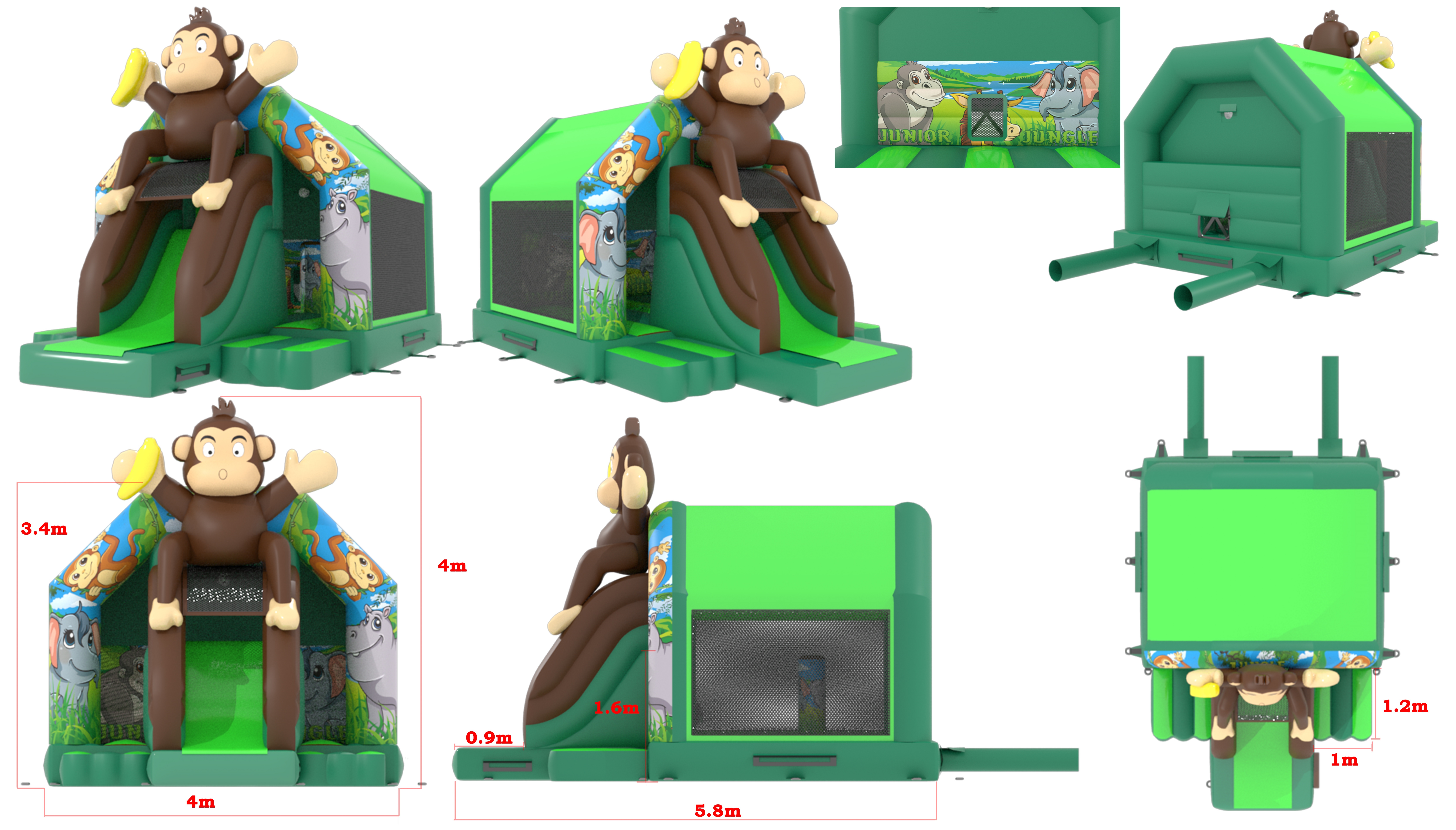 The bouncy castle with slide combines 2 of the most popular items we manufacture in one extraordinary inflatable where space is at a premium. The bouncy castle with slide combo is the perfect combination slide for any party, venue or occasion and is ideal for all age groups. This brightly coloured piece of equipment provides the perfect bouncing area to bounce along with friends, whilst the slide provides entertainment for the rest of the guests at the same time and certainly won't break the bank for the creativity it brings. This will be a battery powered design as standard but can be pre-wired upon request.