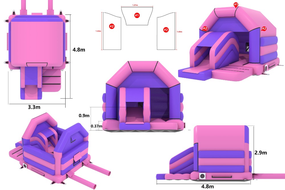 BBOL-109 - 16x12x9.5ft - A Frame Castle - Front Combo - (Pink & Purple Velcro) - DISCO READY (VPC)