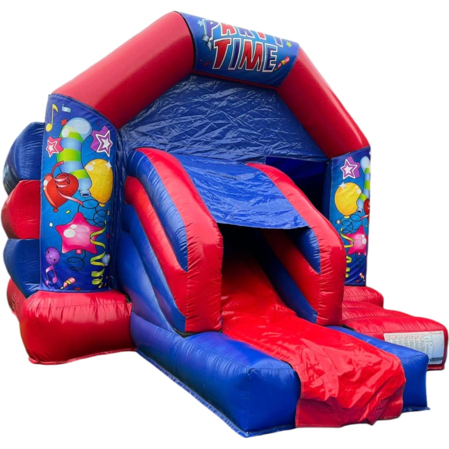 The 11ft x 16ft Bouncy castle with slide is a fantastic new addition that can be added to your fleet. The bouncy castle with slide combines 2 of the most popular items in one extraordinary inflatable where space is at a premium. The bouncy castle with slide combo is the perfect combination slide for any party, venue or occasion and is ideal for all age groups. This brightly coloured piece of equipment provides the perfect bouncing area to bounce along with friends, whilst the slide provides entertainment for the rest of the guests at the same time and certainly won't break the bank.